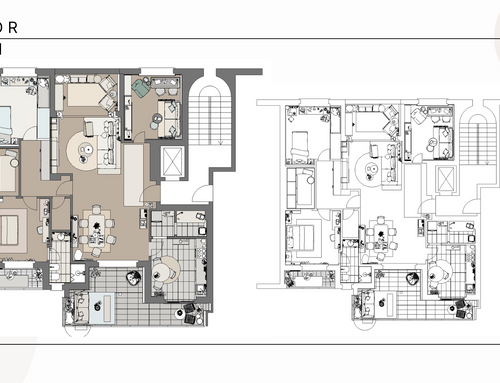 As regards the two bathrooms and the service bathroom/laundry, we have to redo all the coverings, floors and bathroom fixtures. This puts us in a position to possibly review the distribution of the various elements (sanitary fixtures, sinks, etc.) and give a touch of personality to the two main bathrooms. We would like functional bathrooms with adequate space for bathroom linen, cosmetics and various accessories. We would like to have bathrooms with a classic/modern style with combinations of colors and coverings that are able to give the idea of a classic environment with a modern touch that gives it personality.