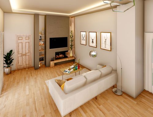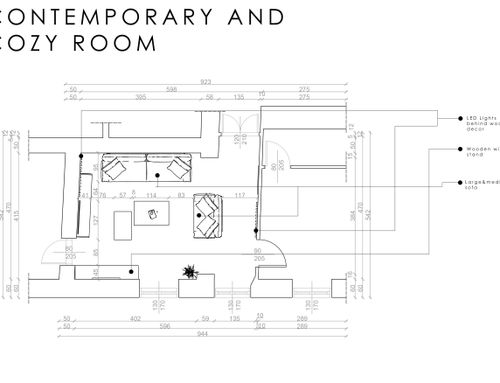 Hi everyone, I have a room that I need to fix. Where it is indicated the entrance will be replaced with a window and the entrance to the garage will become the entrance to the hall. I like the contemporary style but I would like a room that is welcoming and not cold white as seen in many magazines. I would like to arrange either a large sofa or two small ones, a large TV. As colors I like white, black, gray, beige. The fixtures will turn white. The windows face south. As for the photos refer to the current accommodation. The sofa will be replaced and I will remove the wood stove. I'd like to keep the chair and the lamp.