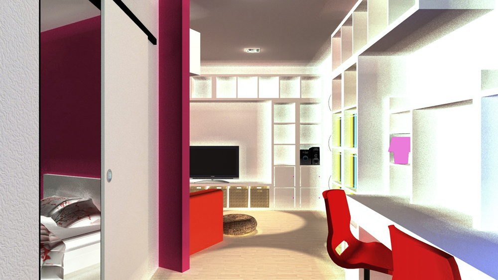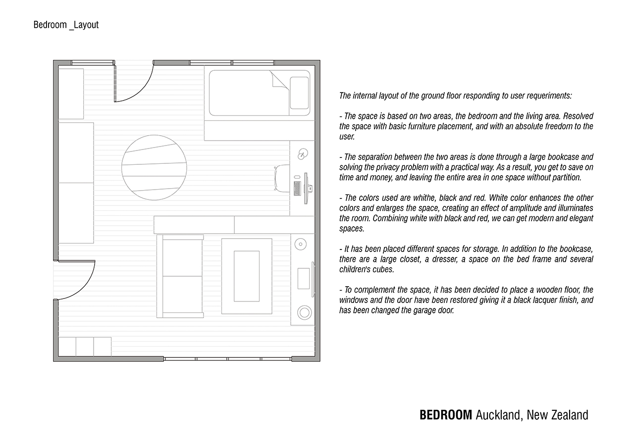 We are currently converting one of our garages into a bedroom for my 18 year old daughter. The garage is big enough for a bedroom at 3m x 3.5 or 4m but I want to maximise the space as we lose a lot of storage by doing this. I also want to have a small little living area for the kids - where they can sit and play games watch TV etc or even just a quiet nice space to read a book maybe by the new door where garage door used to be???? I want to try and keep all the windows where they are and the back door (save on costs etc) but putting in new walls is not a problem - also definitely will wanting a good size wardrobe for my girl and with inbuilt draws to save room. She is starting at University next year so a workspace would be great as well. TV in the living area or hangout space will be wall mounted. Also I will need to have good sized cupboard with easy access to put our central hub distribution board & control4 home automation setup - so our Sat/box x 2 our stereo, apple TV & Blue-ray + PS4 will all be located in a central place (you can see the front of the equipment but easy access to rear which should be hidden - for wires etc.) http://www.lynxnet.co.nz/products/ln-2400dh/ will go into wall and all the rest of the gear needs to go in well ventilated shelves. Also the hallway door can either be moved to the other garage so we have internal access or left as is and we have a new door for access to garage.
