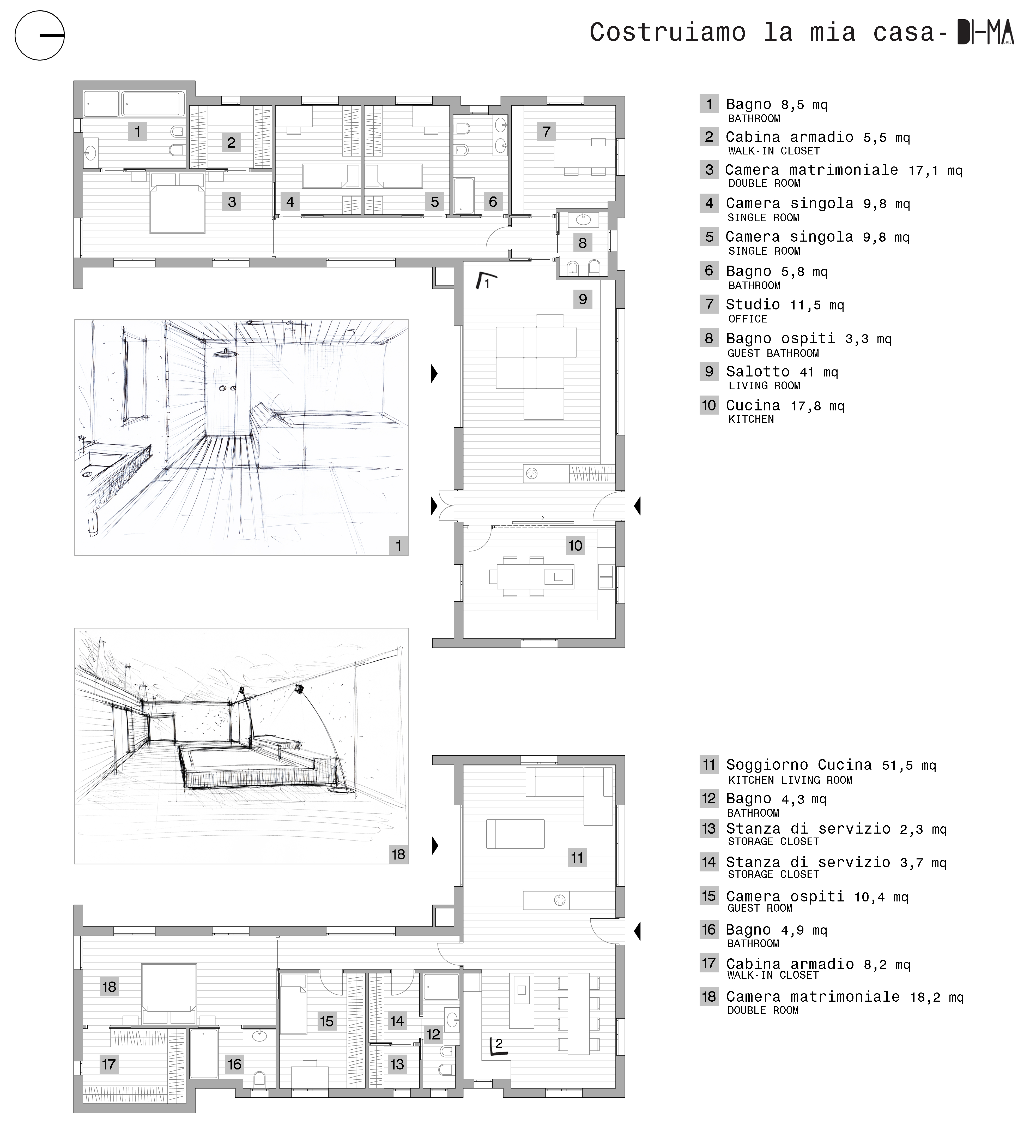il numero delle stanze è adeguato,abbiamo 2 bambini.. da rivedere la disposizione della cabina armadio e del bagno in camera con relativo posizionamento dei sanitari.