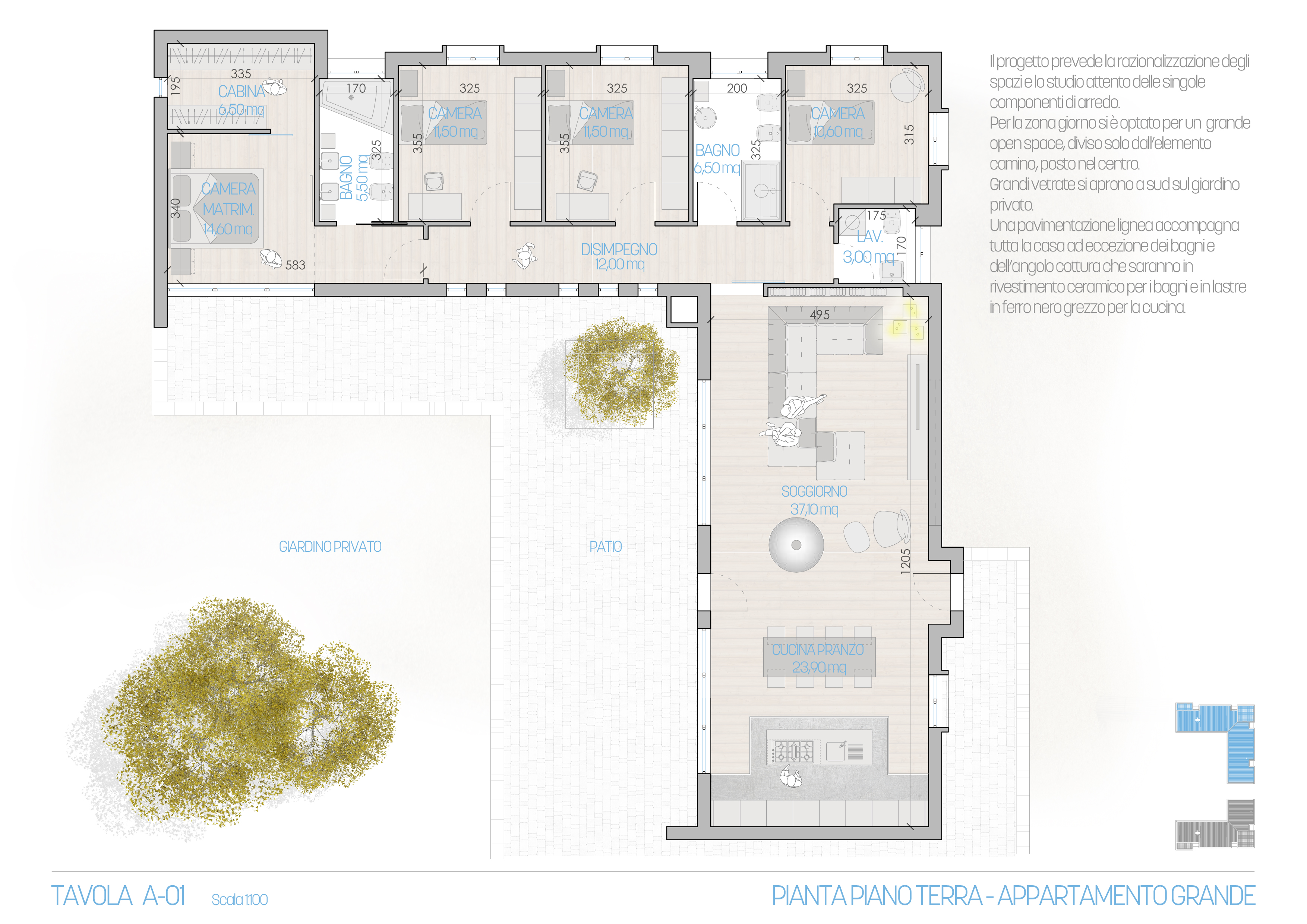 la disposizione della camera\cabina armadio\bagno in camera verrà ripreso dall'appartamento grande,
