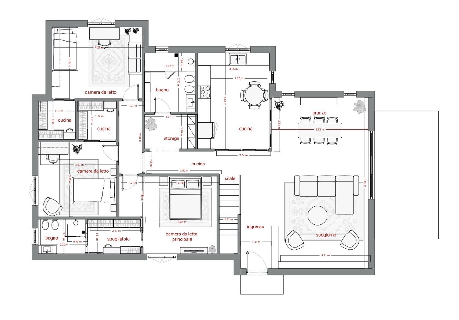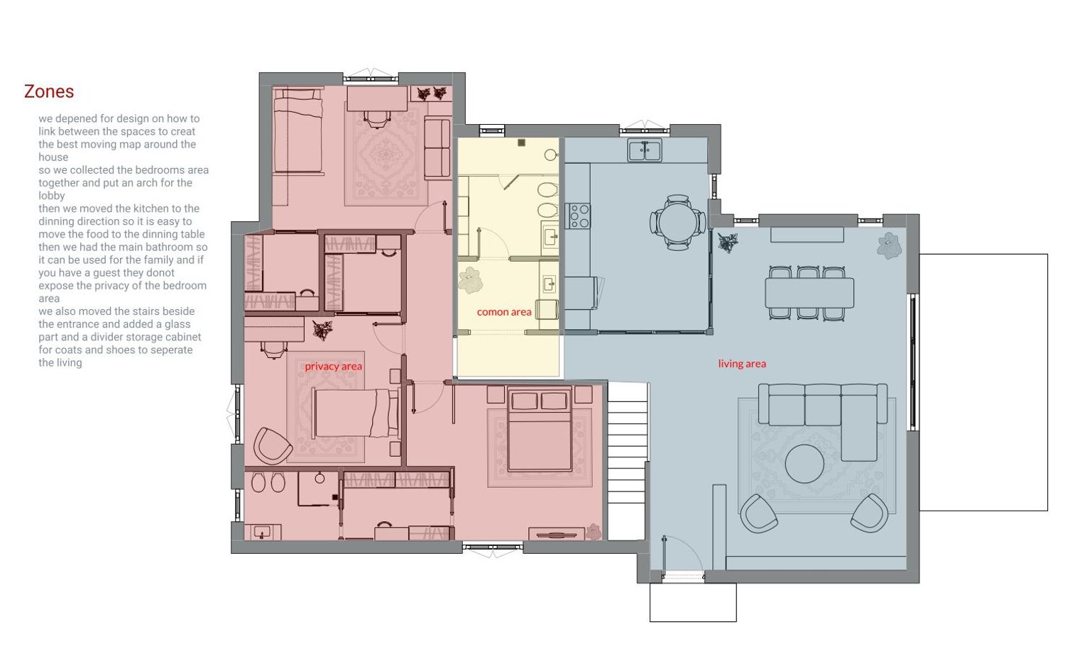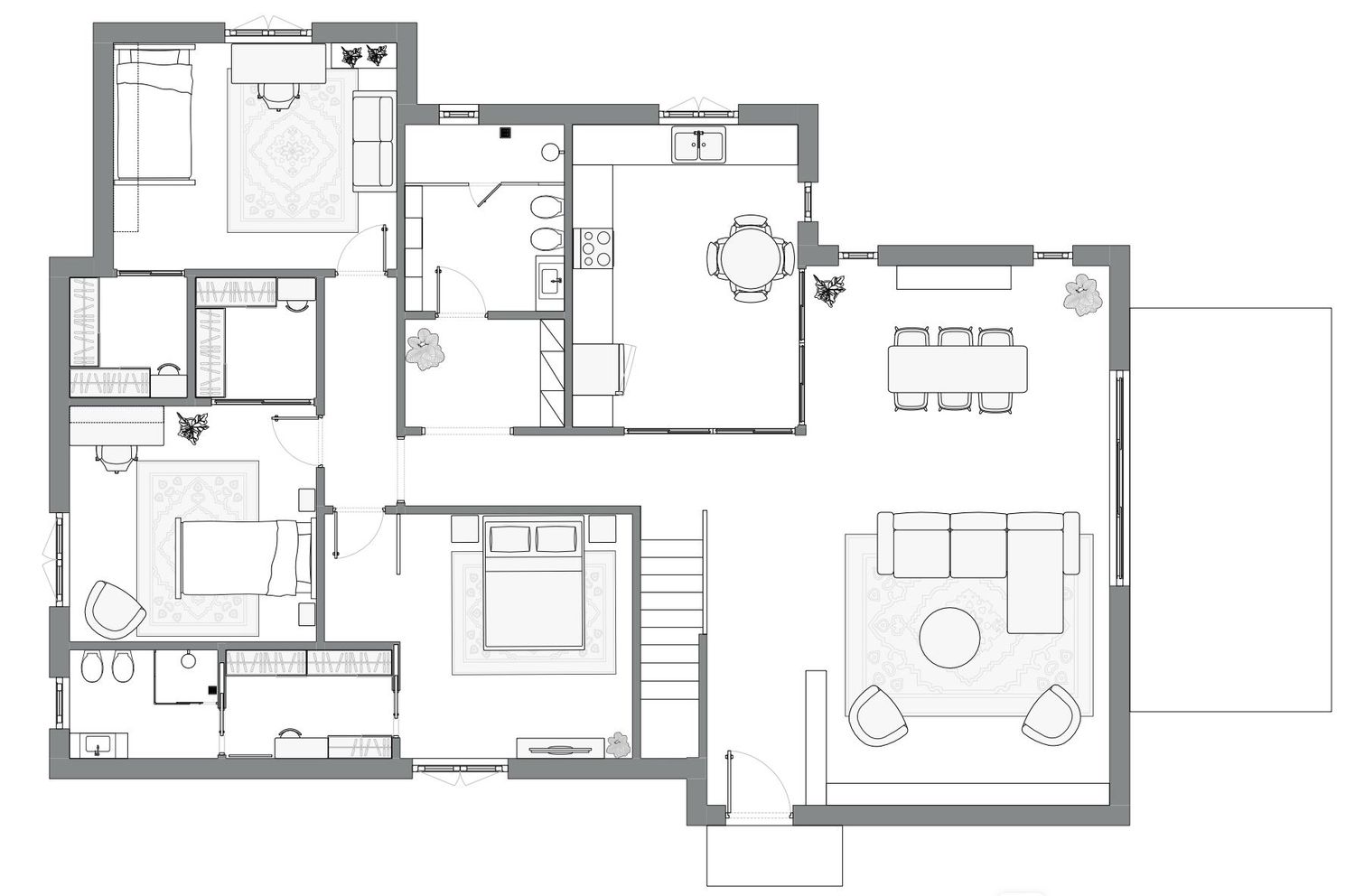 per la progettazione ci siamo concentrati su come collegare gli spazi per creare la migliore mappa di movimento in casa
