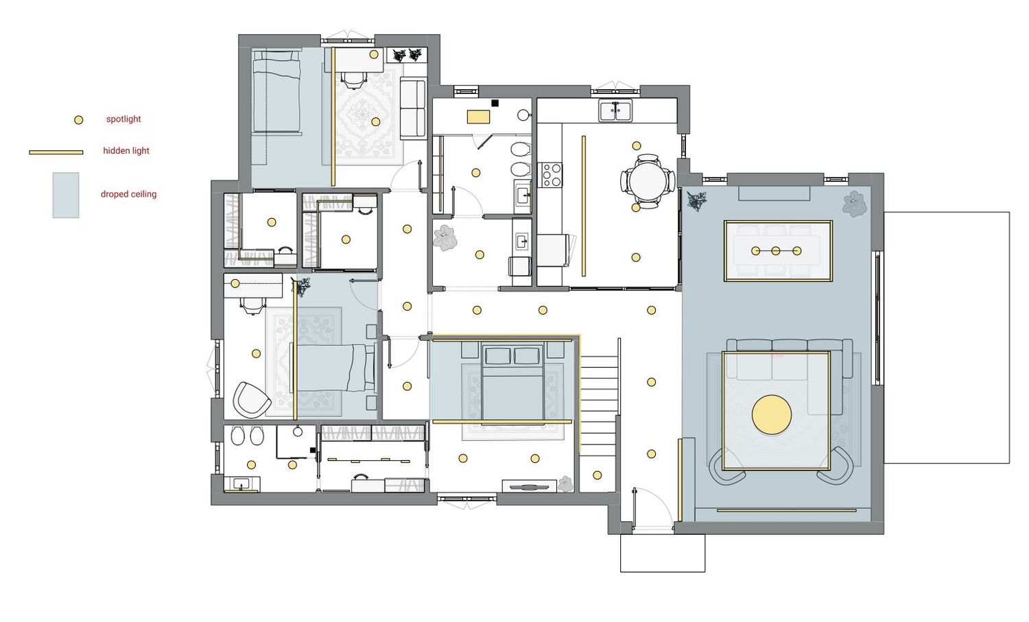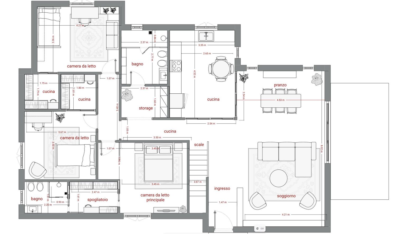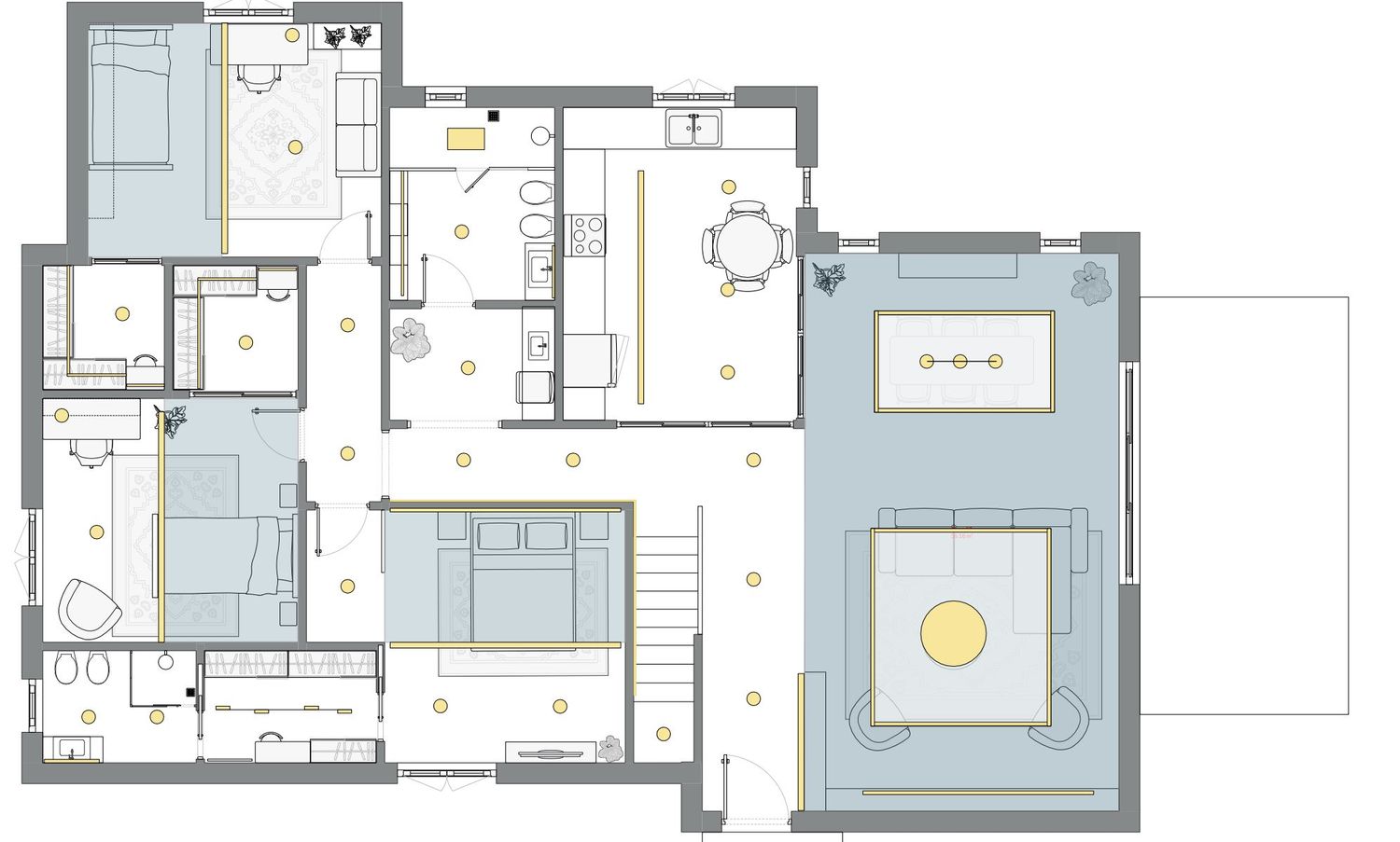 per la progettazione ci siamo concentrati su come collegare gli spazi per creare la migliore mappa di movimento in casa