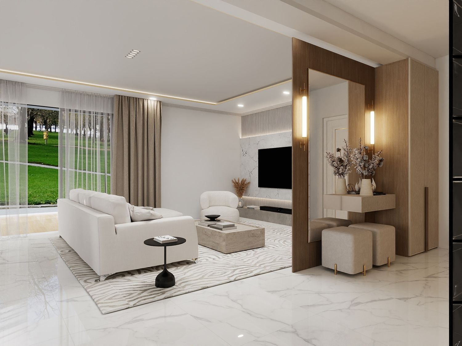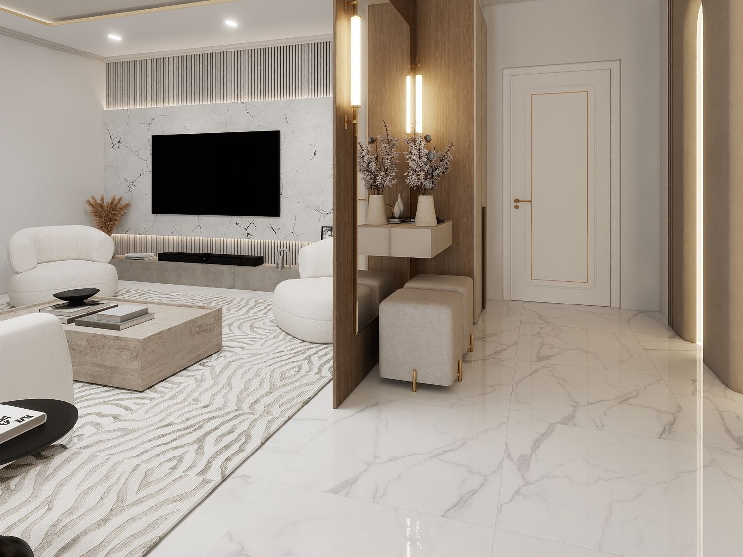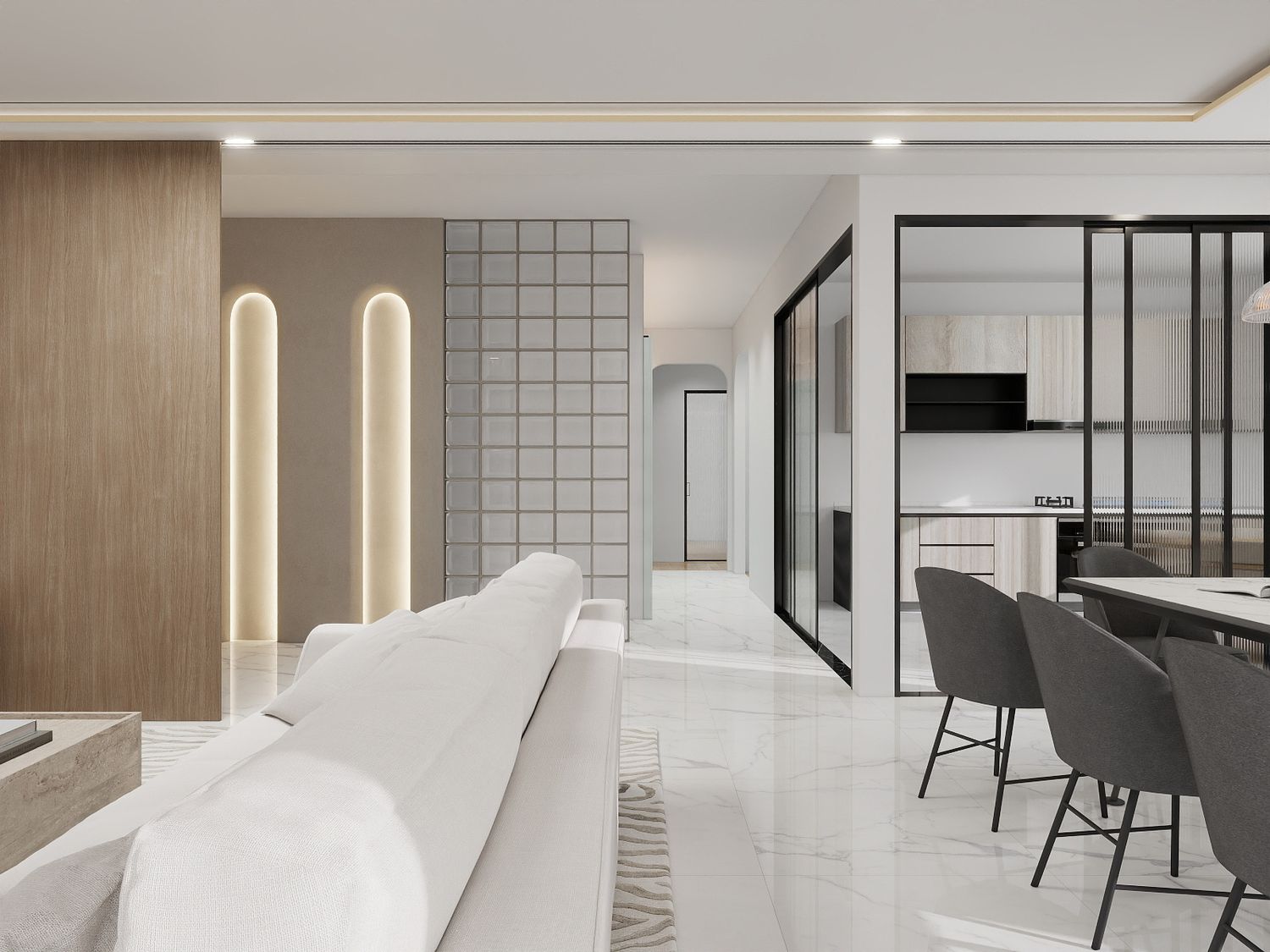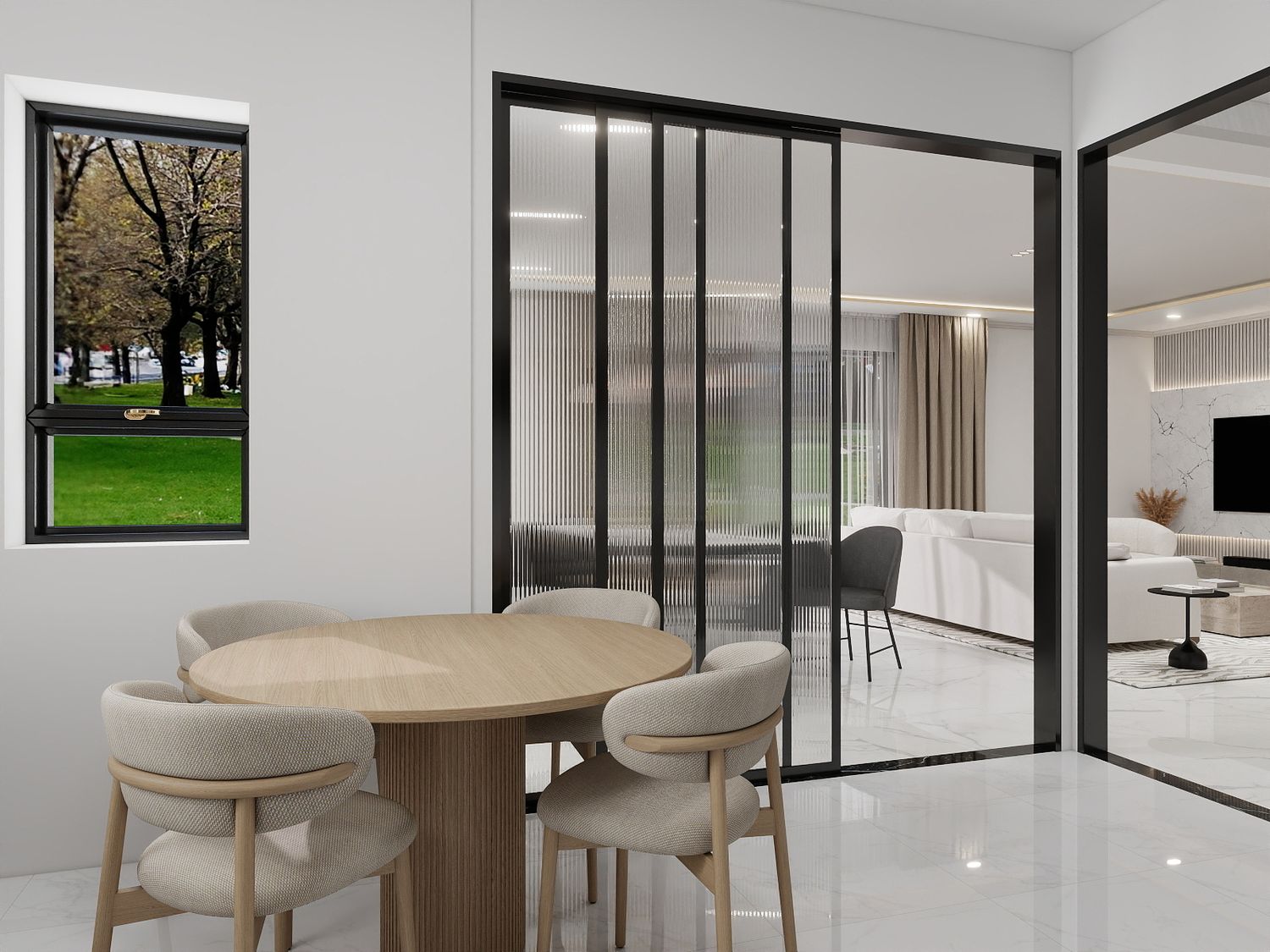 abbiamo anche spostato le scale accanto all'ingresso e aggiunto una parte in vetro e un mobile contenitore divisorio per cappotti e scarpe per separare il soggiorno
