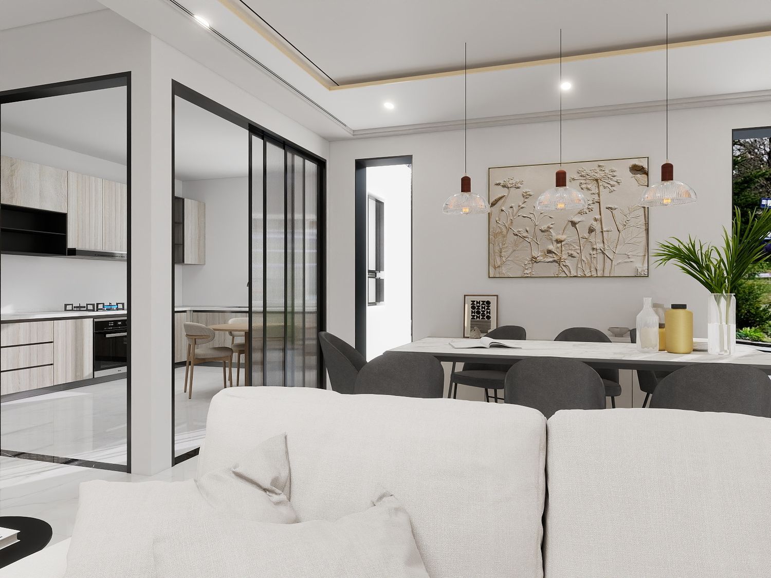 poi abbiamo spostato la cucina in direzione della sala da pranzo in modo che sia facile spostare il cibo al tavolo da pranzo