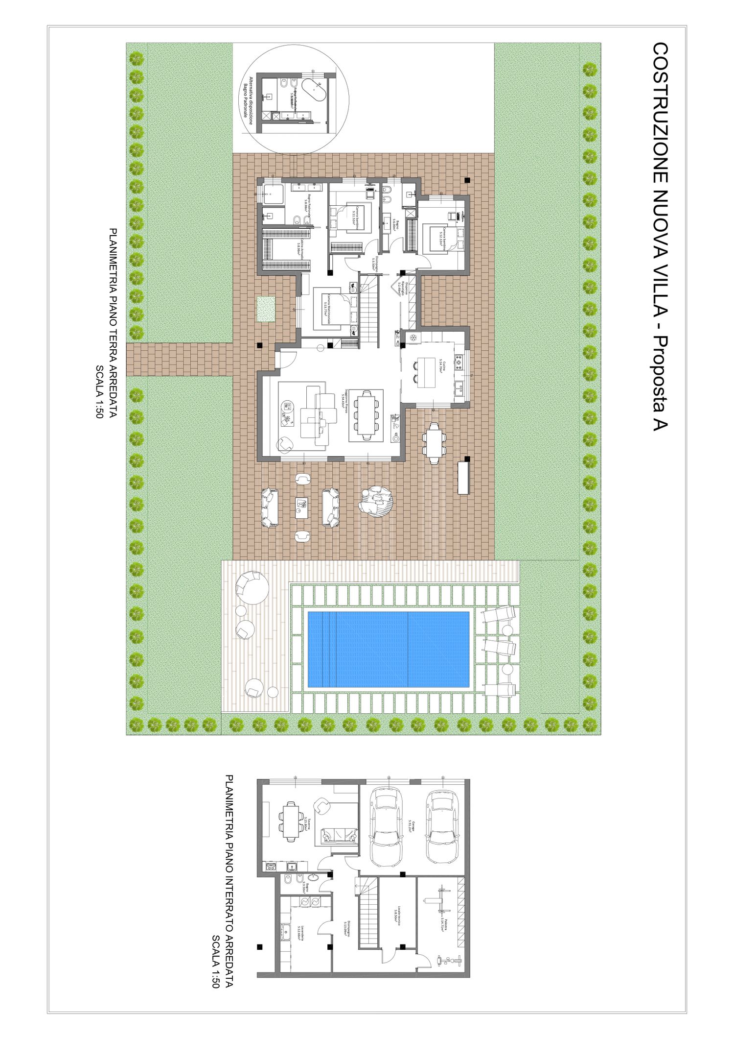 • Outdoor: Area salotto esterna, zona pranzo con mini-cucina/barbecue e predisposizione per piscina.