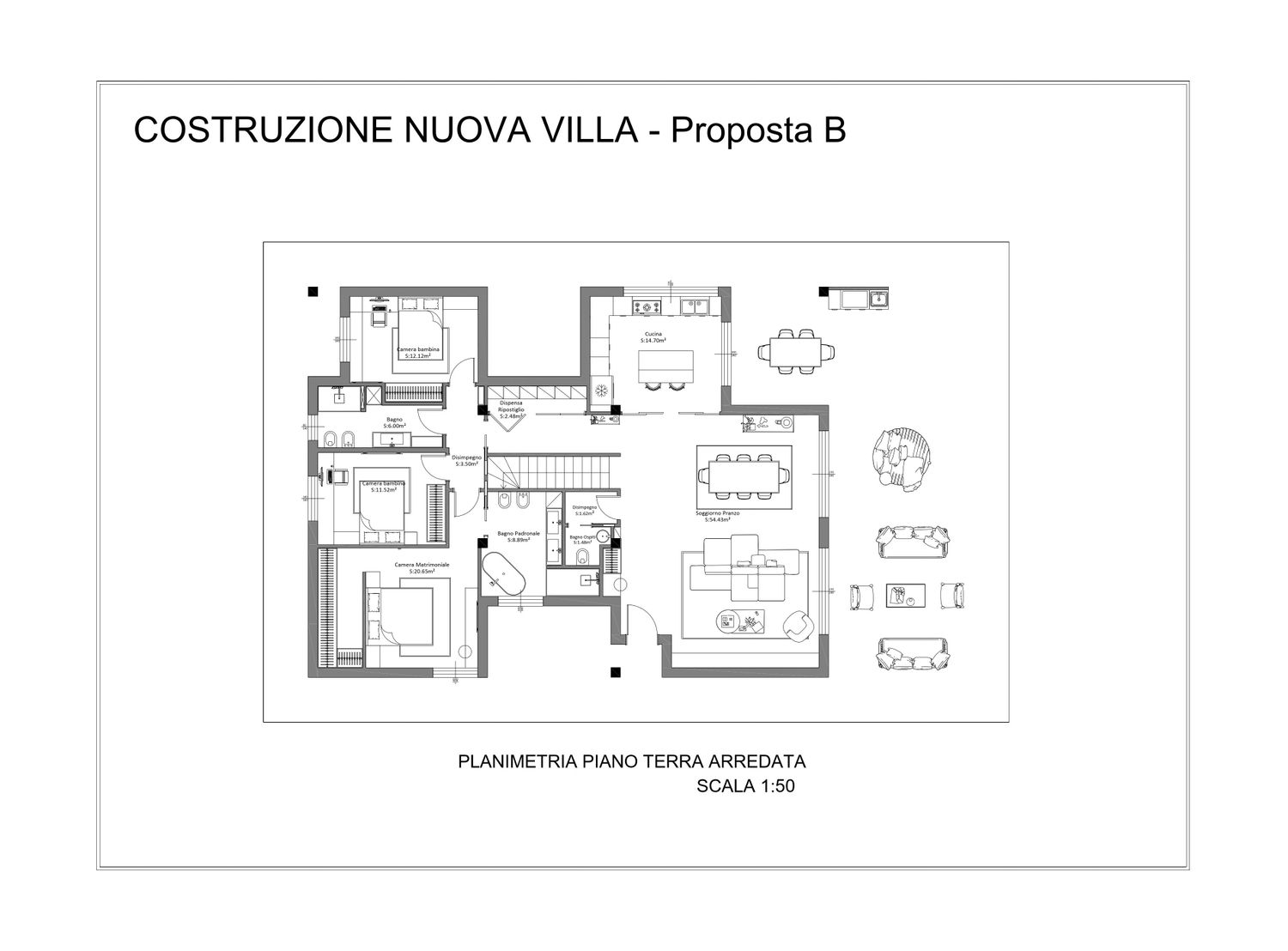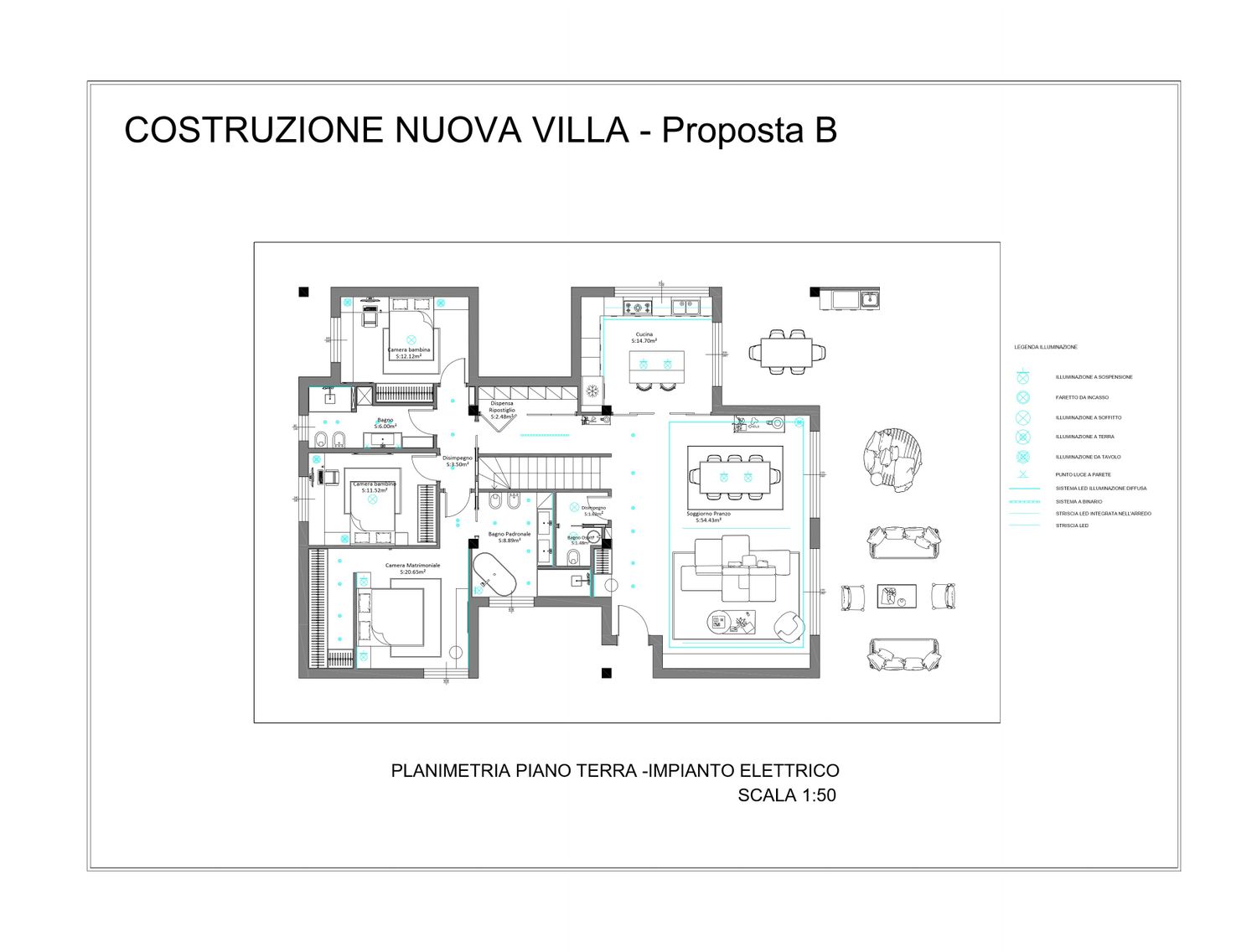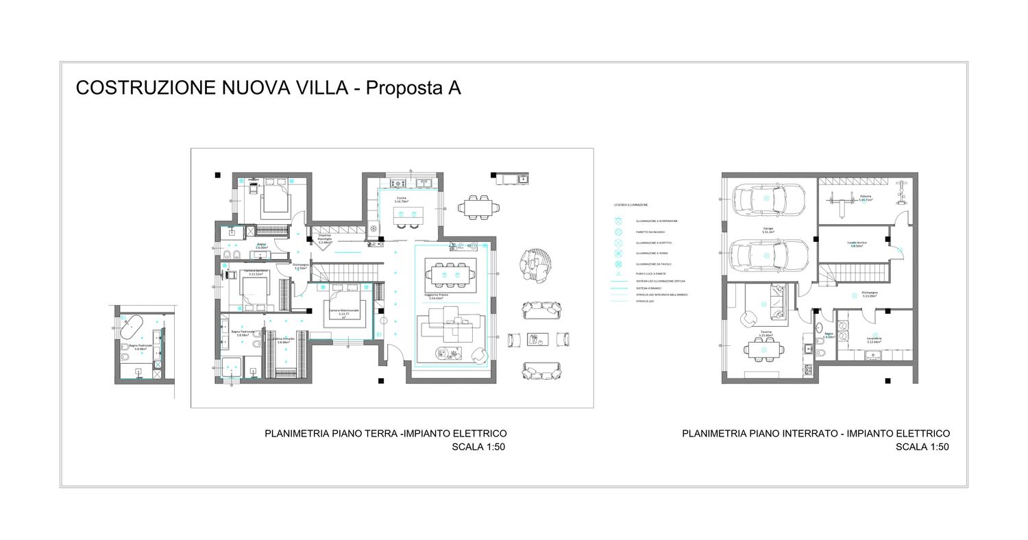 Il progetto prevede la realizzazione di una villa di 140 mq sviluppata su un unico livello, con un piano seminterrato destinato ai servizi accessori. L’impostazione planimetrica è stata studiata per ottimizzare gli spazi sulla base dell’impostazione del cliente, mantenendo percorsi fluidi e un’estetica pulita caratterizzata da colori chiari.