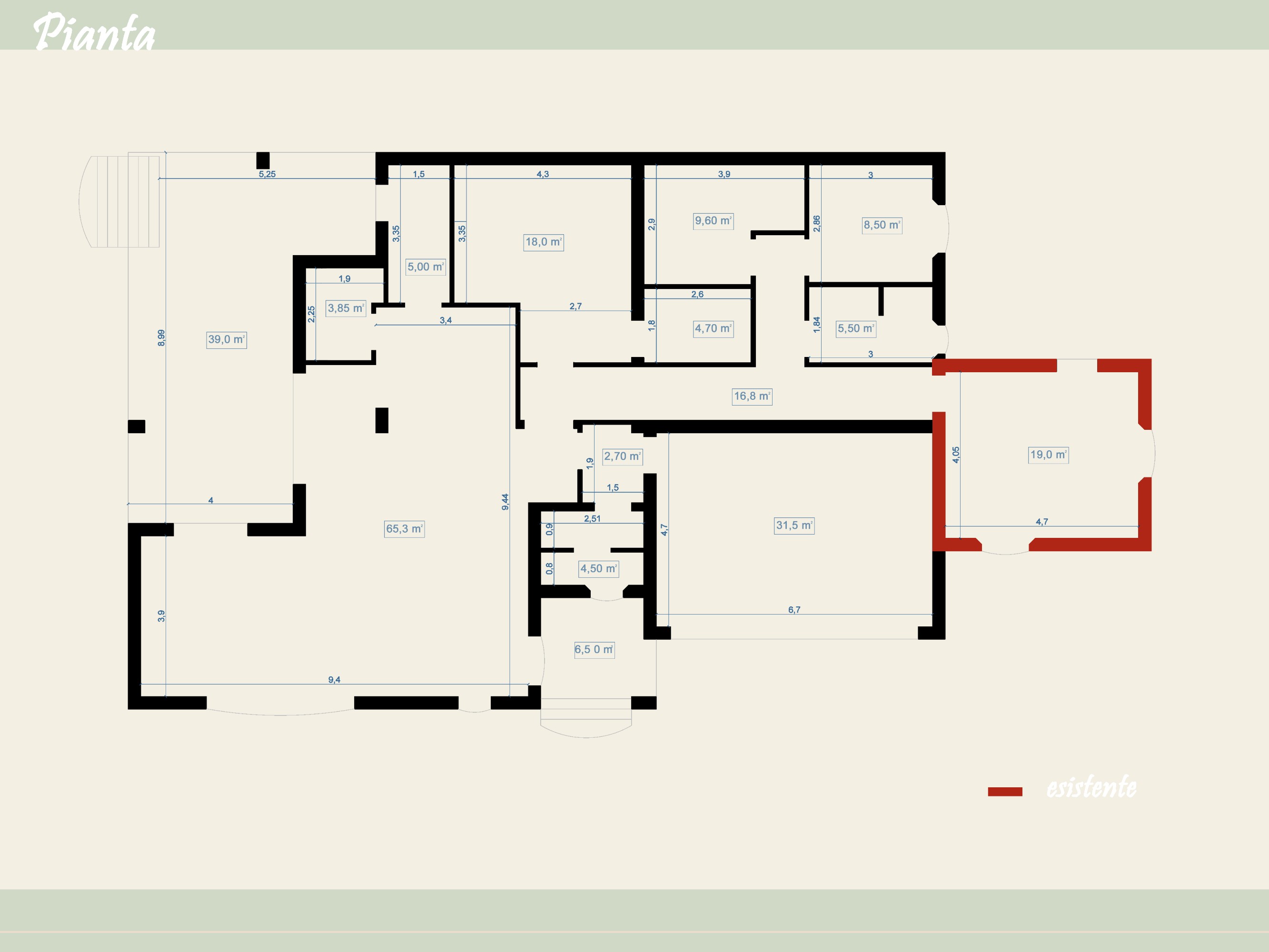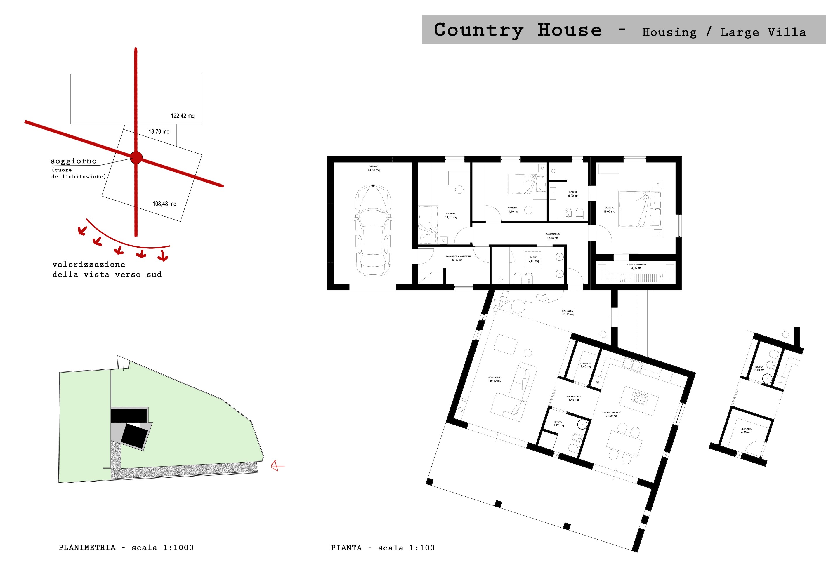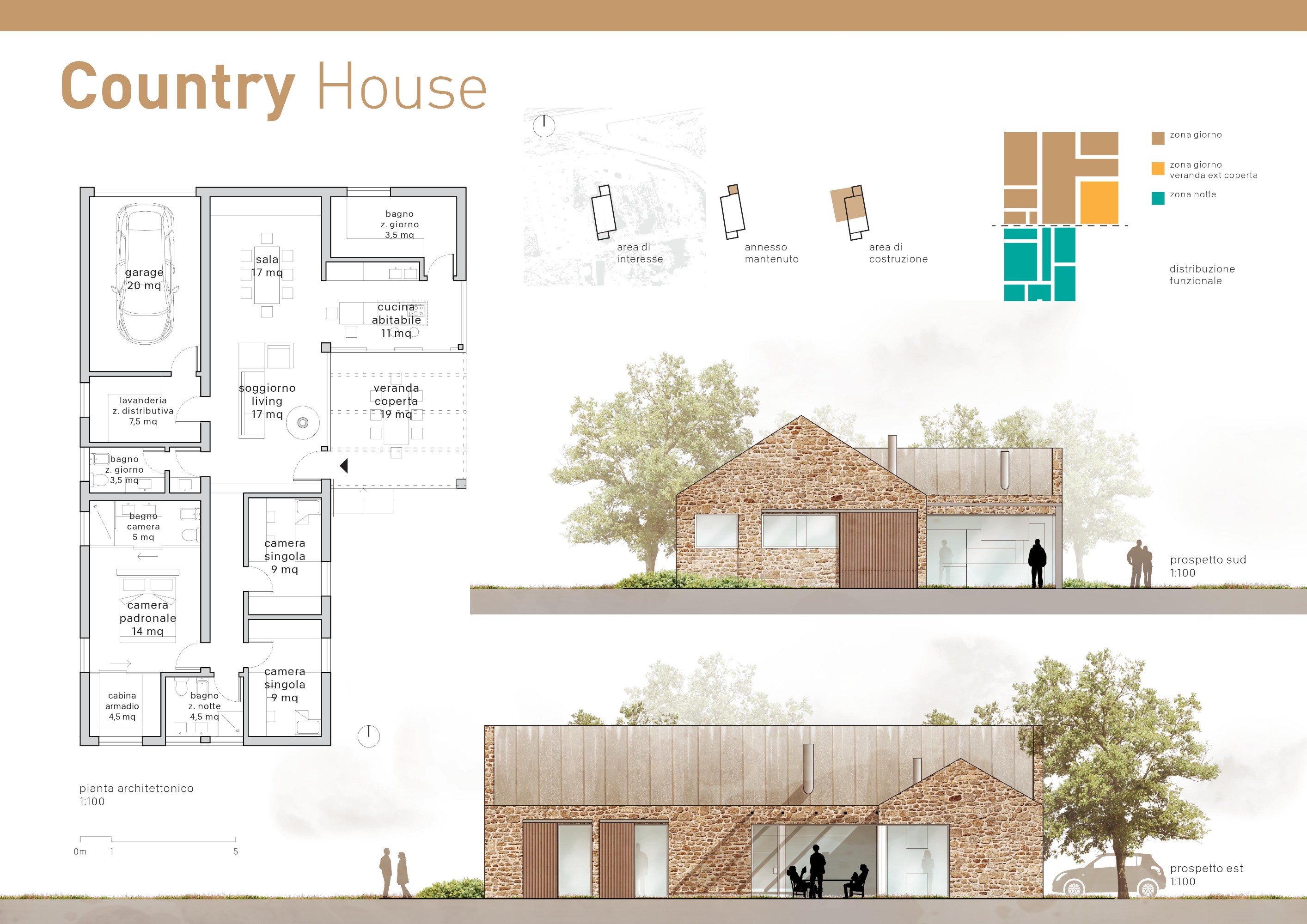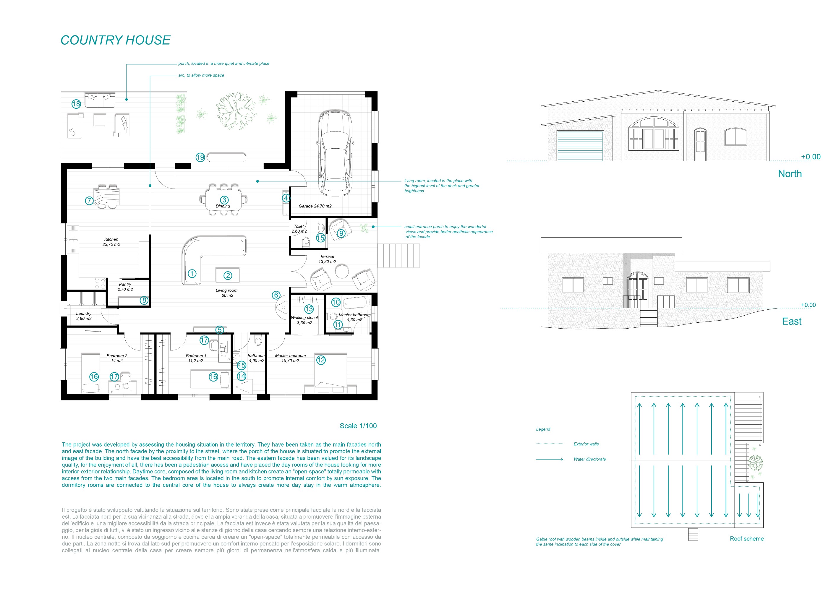 La casa si svilupperà in un unico piano, senza solaio e col tetto a vista in legno, altezza minima 2,70 metri, avrà una volumetria, di 770 metri cubi escluso l'annesso.