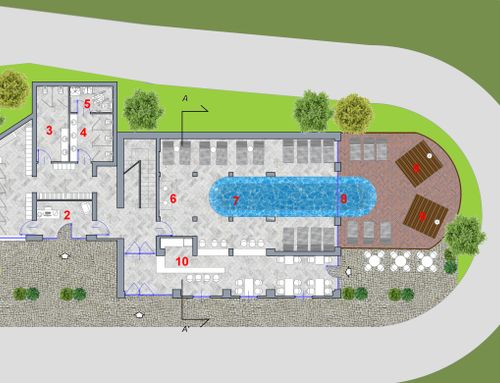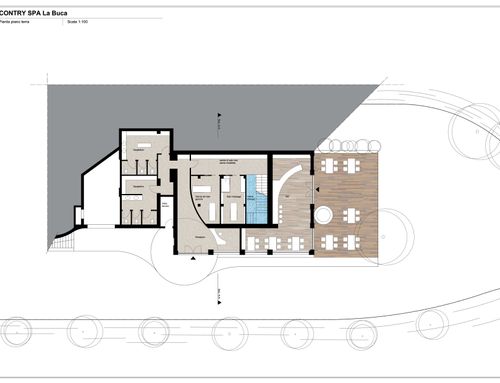 redevelop a barn to become a wellness centre in the agri-tourism sector. The idea is to keep as much as possible the "rustic air" that blends well with the surrounding environment, enhancing the panorama that can be seen from the first floor of the barn. It is thought to include a sauna, a Turkish bath, and a whirlpool, hypothetically on the first floor. if possible also a bar corner on the ground floor...