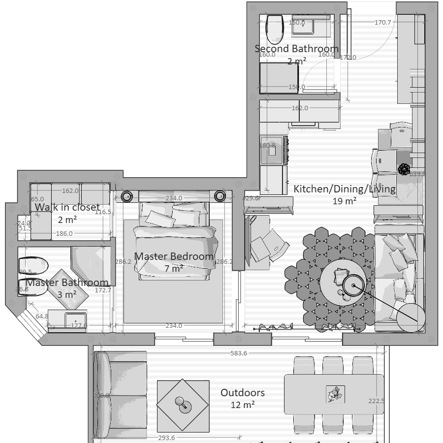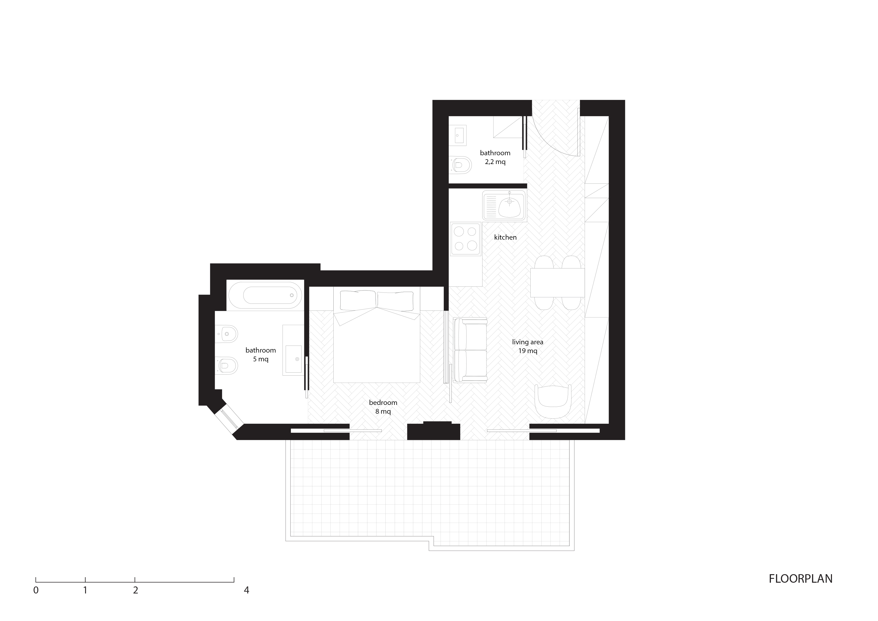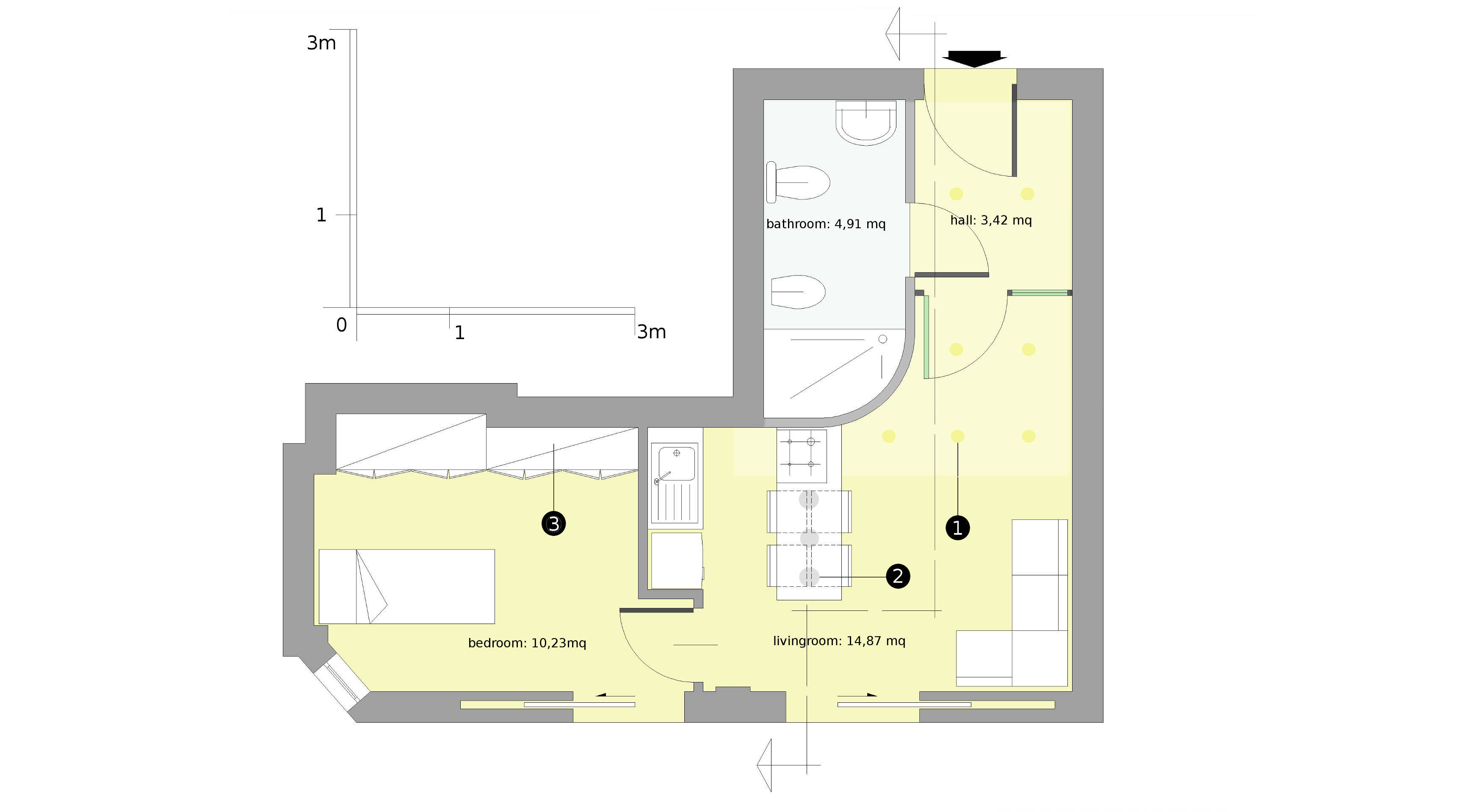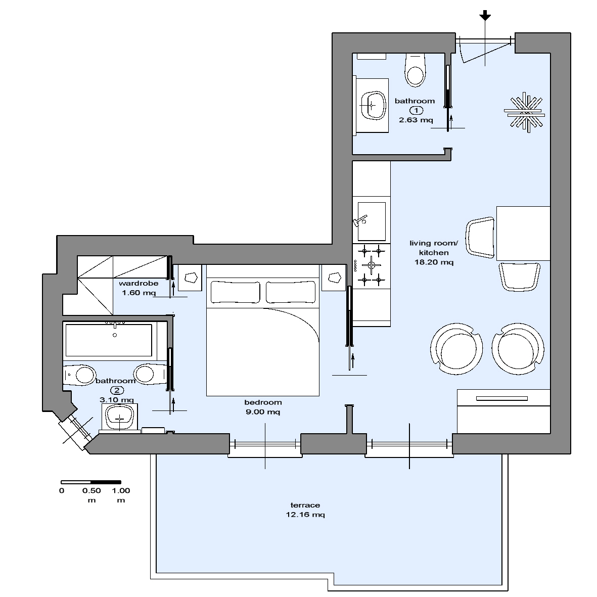 - Soluzione 'soggiorno+cucina' a scelta, sia separati che open space.