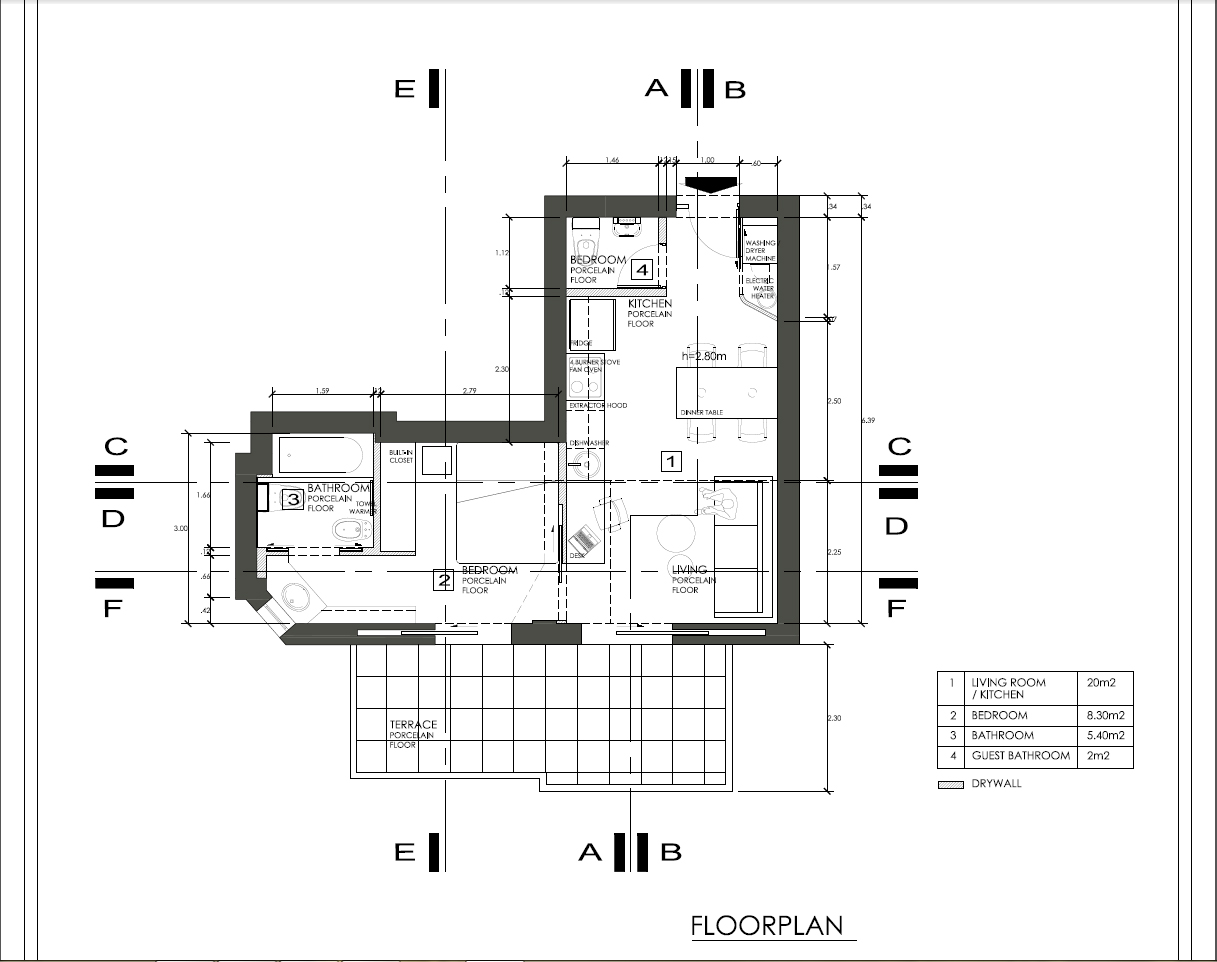 - all'ingresso a destra vorremmo un piccolo bagno ospiti solo con lavabo e wc sospeso