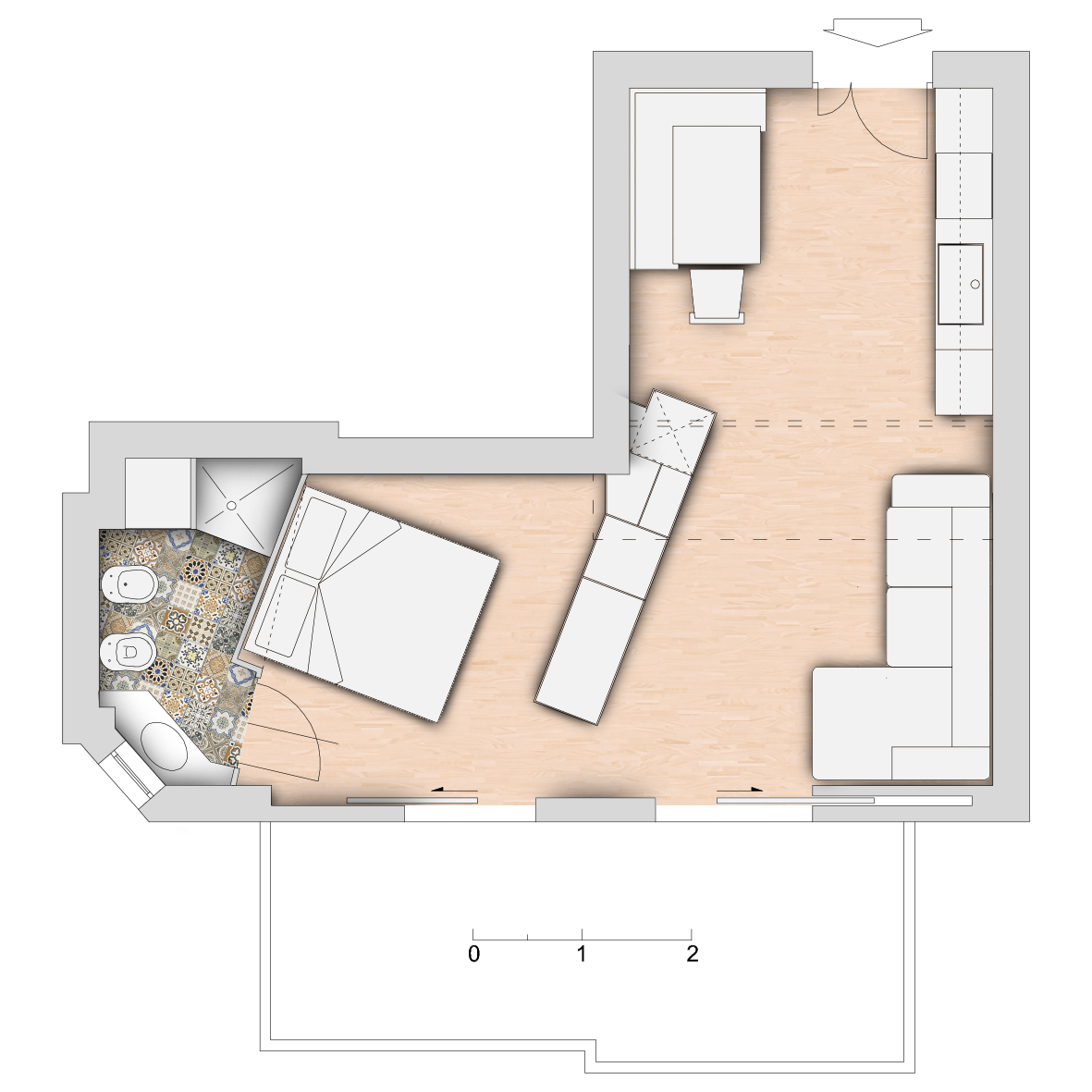 - Il pavimento lo vogliamo tutto di un unico colore incluso il bagno.
