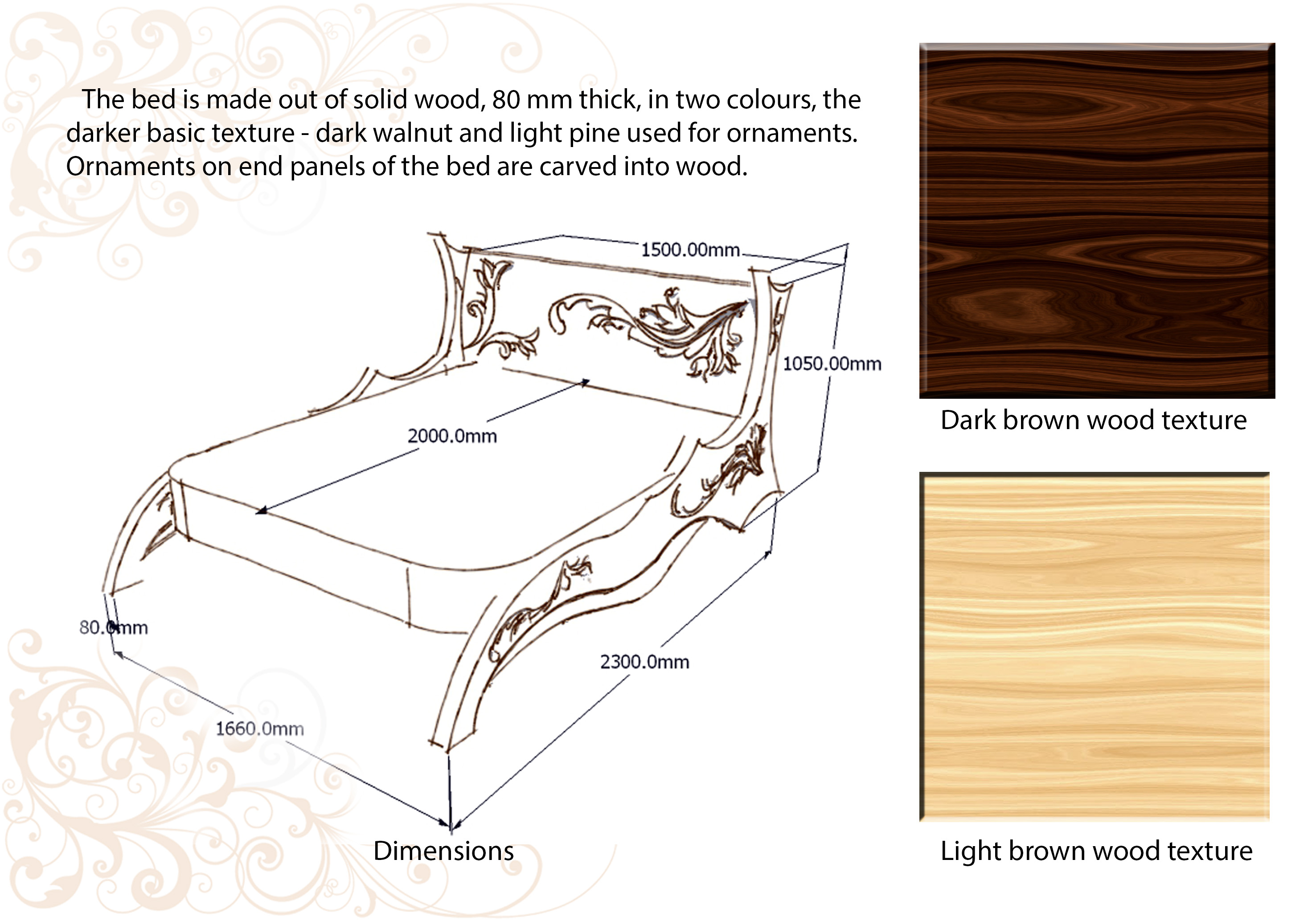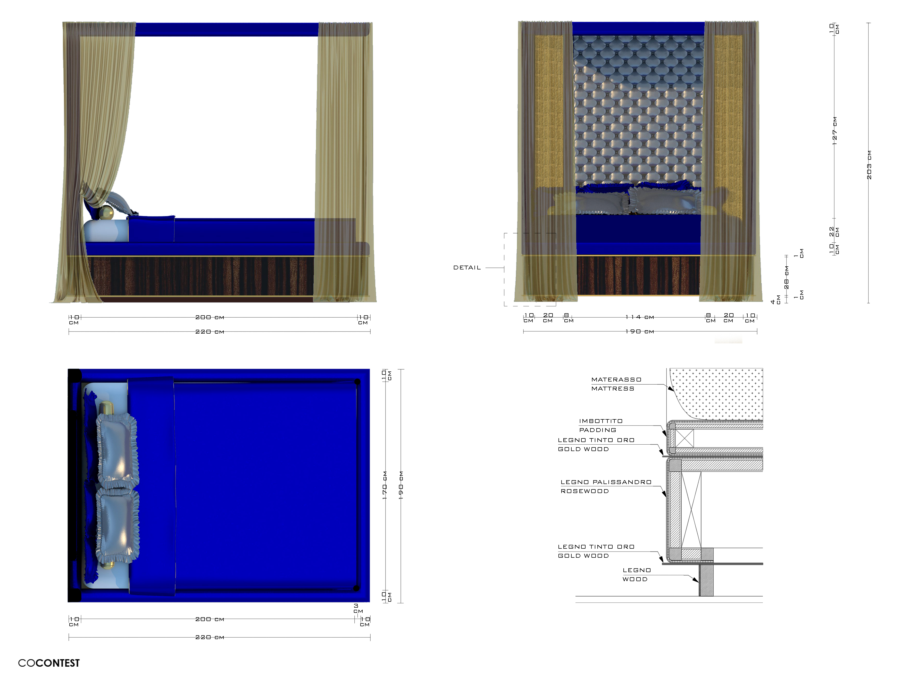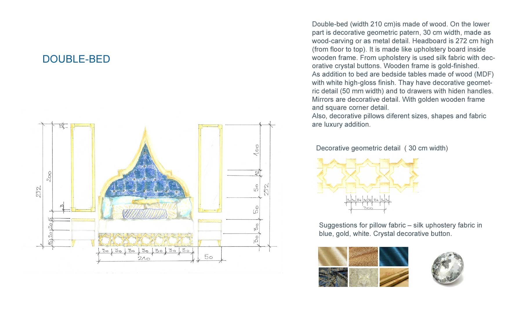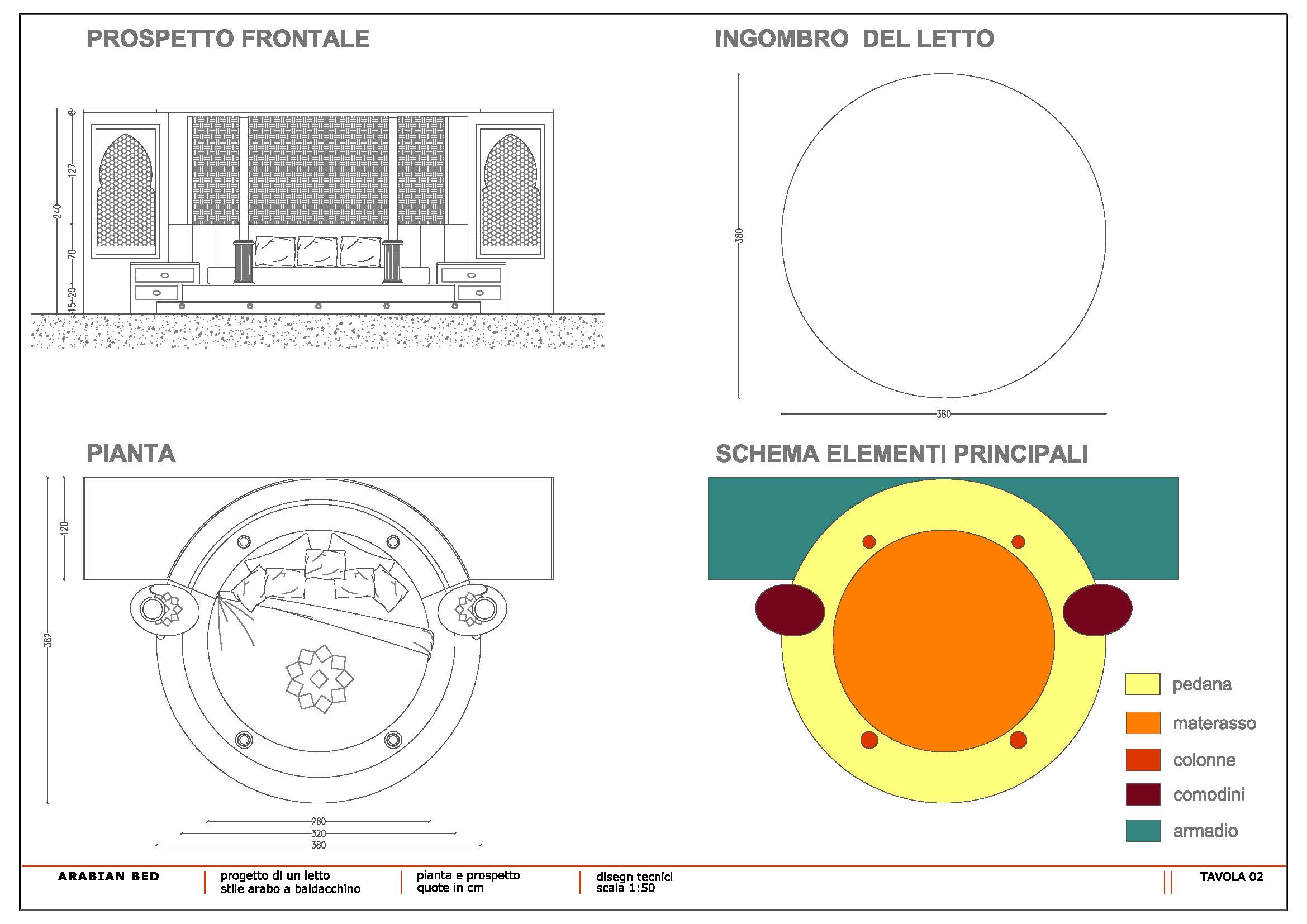 Si richiede il progetto di un letto matrimoniale per una camera da letto da mille e una notte, lussuosa e raffinata in stile arabo.