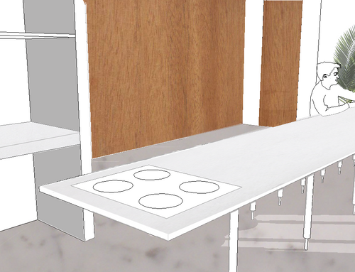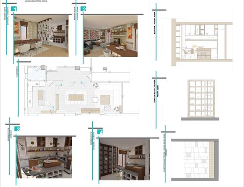 my house is getting old. It is a wide apartment with a big terrace, unfortunately the house is a bit dark because it is on the ground floor of a building. My first and foremost concern is to totally renovate the kitchen and connect it to the living area (I’d like to remove the partition wall here). I’d like a handmade kitchen, essential and simple, with high-tech instalments and appliances. I really like to cook. I’d also like to have a counter and some element (not a wall) that could partly divide the kitchen from the living. I need a big table to host many friends at dinner and also a small table in the kitchen where I could sit and work with some privacy. I’d like a pantry in masonry with a ladder with a trail to move it and with a good lighting.