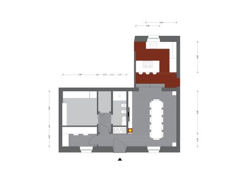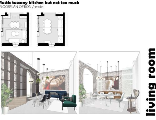 We currently live with my partner and 4 year old daughter in a modern furnished apartment on the first floor which is accessed via an internal staircase. From the same staircase I access the old apartment of my grandparents on the ground floor that I am going to renovate and for which I am looking for inspiration. As it is very expensive to make a single house, we decided to renovate the ground floor making a large living room of about 34 square meters, a bathroom, a closet and a room to be used as an ironing-clearing room. the ground floor apartment has its own entrance and cadastral parcel so one day it can be used as an independent apartment. I would need to design the living area which will be a large room divided by a step and a brick arch which will be used for dinners with friends and family and small parties. The ceiling has Tuscan vaults but most likely (I will be sure only after removing the plaster) they were used with perforated brick and therefore not particularly beautiful to leave on sight. The walls are brick (currently plastered) but even here they are not particularly beautiful aesthetically because it was customary in my areas to use part of the burnt bricks from the furnaces of the town. While preferring modern furniture we were planning a rustic (but not too much) furniture, a modern tavern, going to enhance the typical Tuscan architecture such as arches and brick walls. The best solution we have thought of for the kitchen is to make a sink with burners on one side (possibly also a built-in kitchen) and on the opposite side a pantry and fridge with free-standing appliances. The other part of the living area will follow the style of the kitchen and in addition to a large table I have no particular needs. The style could be industrial but I don't know if it fits the project.