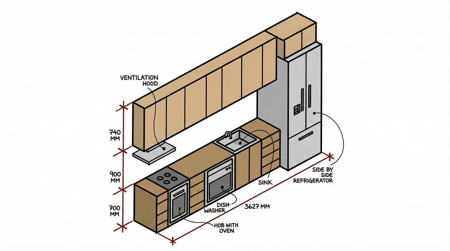 Layout Dedicato della Cucina: Per vostra comodità, viene fornita una planimetria separata e dettagliata della cucina, volta a evidenziare chiaramente la specifica disposizione degli arredi, il flusso operativo e il design delle aree di lavoro.