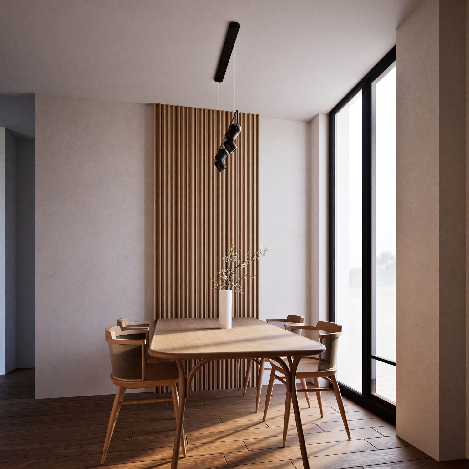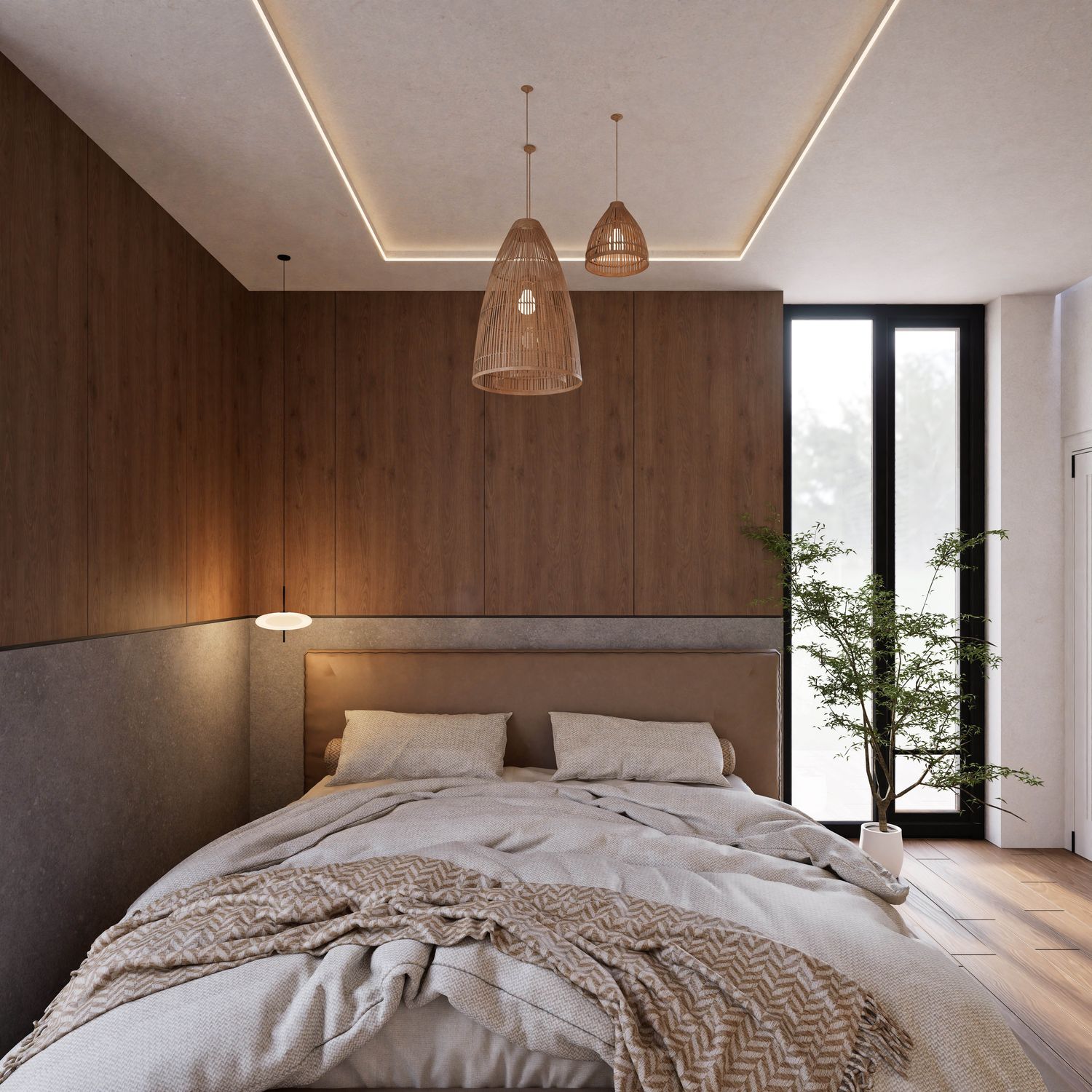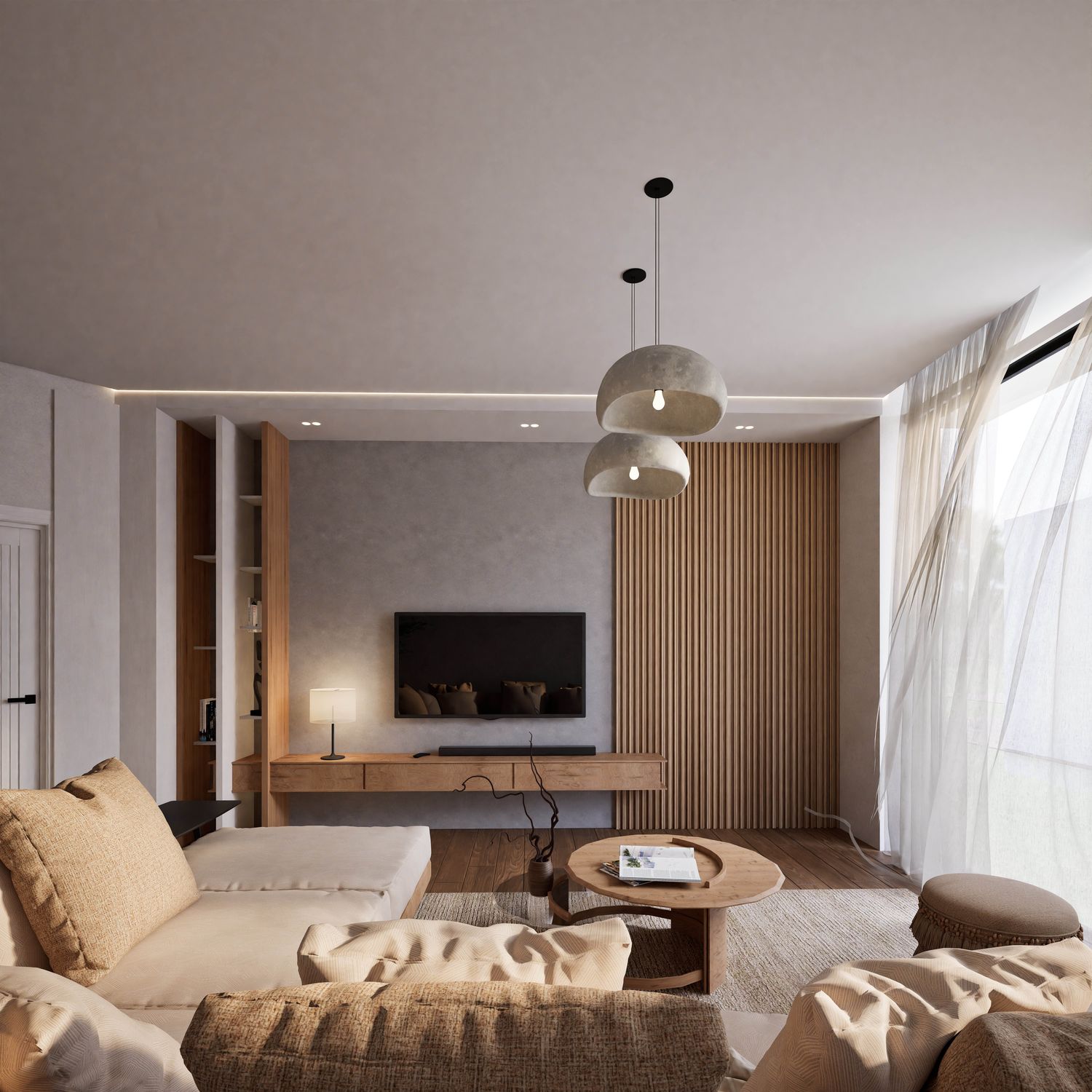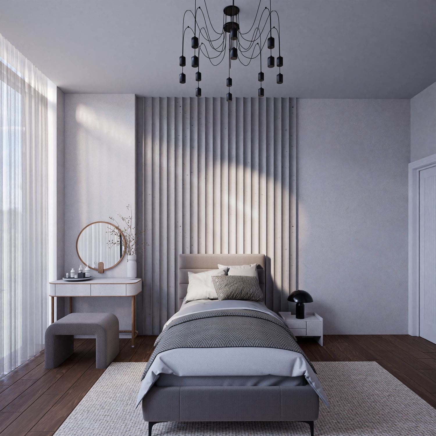 This design has been developed based on your needs and requirements for a four-person family apartment. The living and dining areas, together with the kitchen, are placed in the brightest part of the home to create an open, warm, and welcoming environment for family gatherings and entertaining guests. Three independent bedrooms with dedicated functions (a master suite with a private bathroom and walk-in closet, a boy’s room with a gaming station, and a girl’s room with a study desk and dressing table) ensure comfort and privacy for all family members.