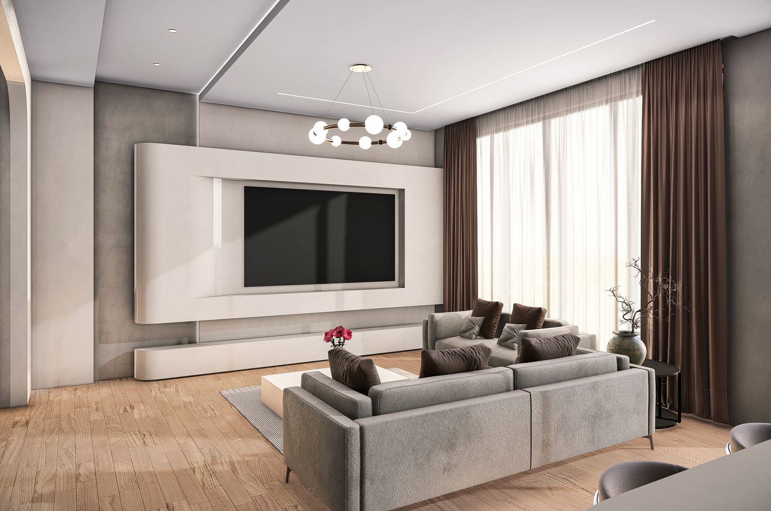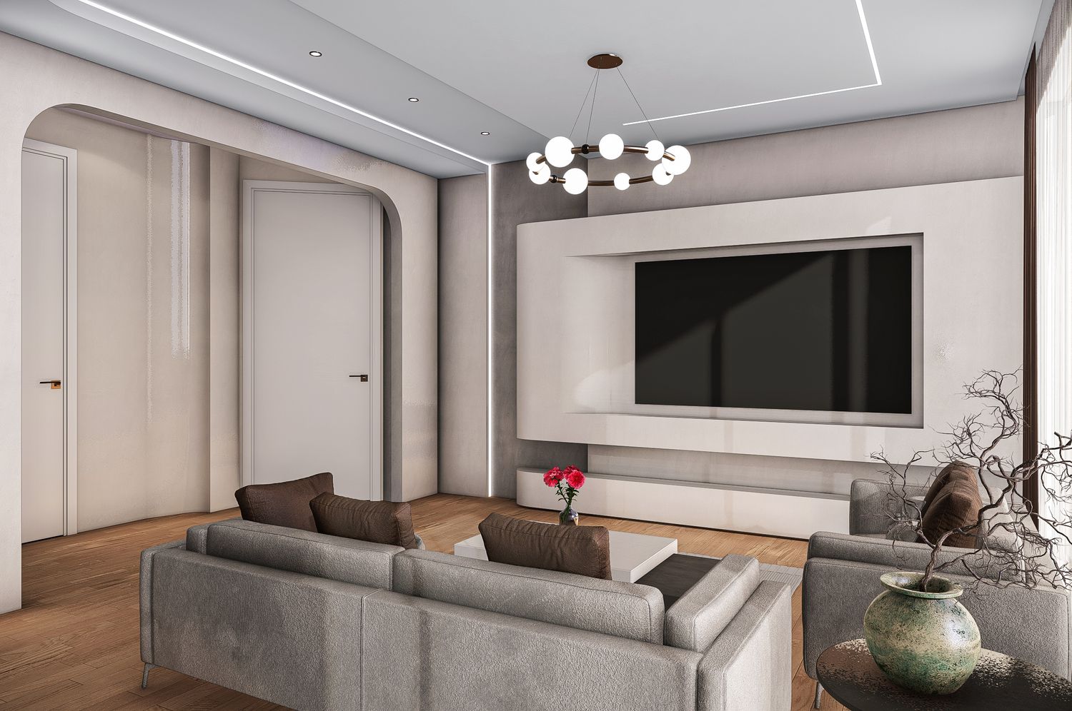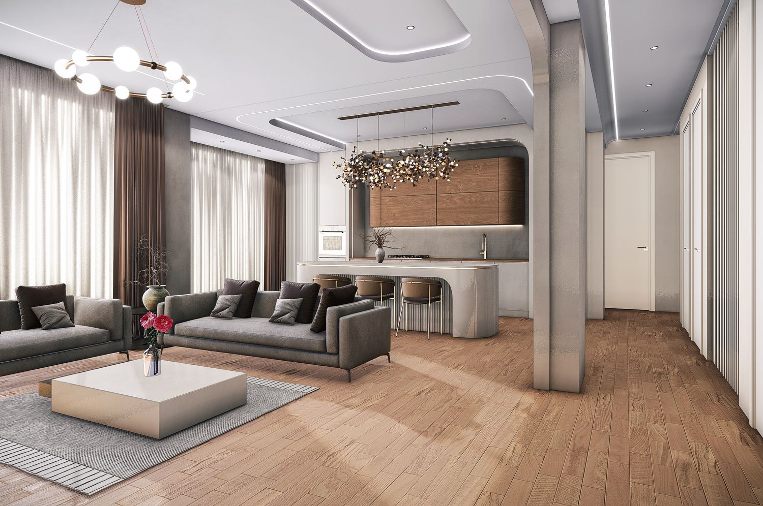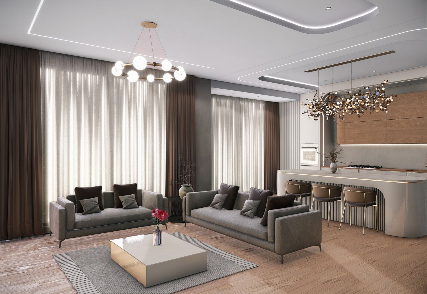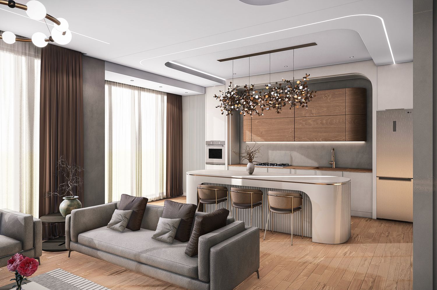 After a thorough analysis of the apartment layout, your needs, and your preferred style, we have prepared four proposed designs. All options have been developed with full consideration of interior design standards, technical requirements, and the specific details you requested. You can select any of these options individually or combine their ideas to achieve the best possible result.