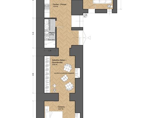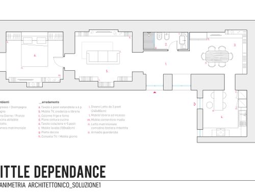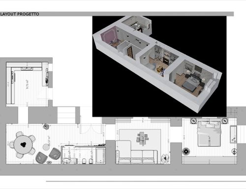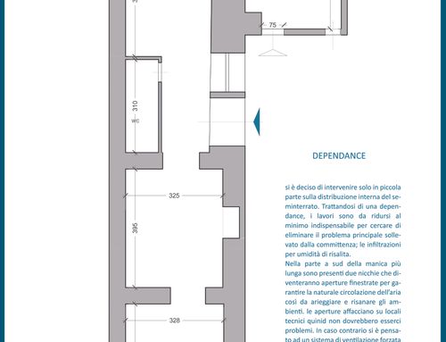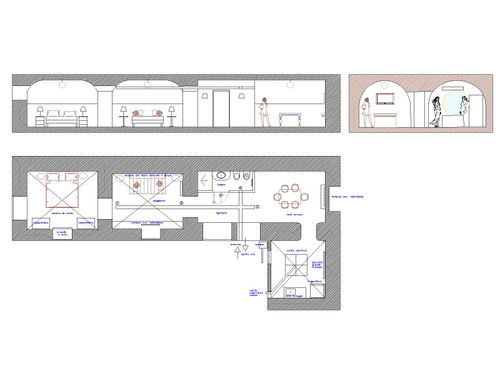 Vi è un grande problema di umidità di risalita essendo un piano seminterrato. La necessità di coibentare/ventilare è pressante. Stile sobrio, semplice e funzionale. Descrizione: l'accesso si effettua dal cortile interno condominiale al piano seminterrato (foto accesso); di fronte alla porta di ingresso il bagno (con necessità di ventilazione forzata e quindi prevedere un canale che va all'esterno per l'aria con ventilazione) il bagno ha già predisposto pezzi e piatto doccia); a destra si entra in un locale già predisposto per cucina che comunica con altro piccolo locale con accesso autonomo; l'idea è quella di spostare la cucina nell'altro vano e adibire il vano comunicante più grande a sala da pranzo - soggiorno; a sinistra dell'ingresso si accede ad un vano e poi tramite altra arco/porta ad altro ulteriore vano. La casa essendo al piano seminterrato ha come fonte di luce l'accesso, una finestra accanto e altra finestra dalla strada (per il vano in fondo) e nel vano da adibire a cucina (porta con accesso all'esterno sul cortile e piccola finestra). Poca luce, tetti a volta ad unghia ma bassi (vedi planimetria). Nicchie nelle pareti da poter eventualmente strutturare come armadi o mensole per libri etc. Ambienti da considerare, pranzo/soggiorno, stanza da letto e stanza/salotto. Ho caricato foto (poco luminose con flash perché non c'è luce). IMPORTANTE: ho fatto una conversione pdf a dwg con un programma di conversione gratuita file... non posso vedere come è la resa della conversione perché non ho autocad. Il file convertito pertanto va considerato solo in raffronto con il pdf.