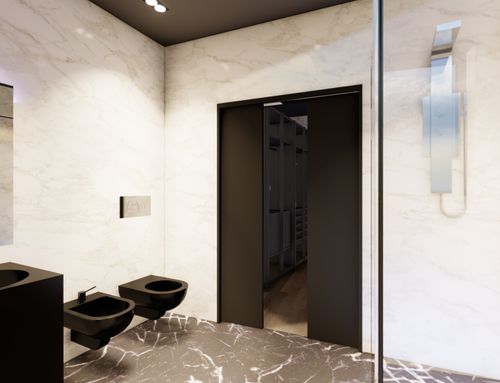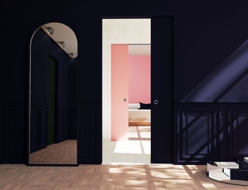 Ermetika pocket door systems flush with the wall allow installing doors free from any doorjamb and architrave, so that you can have a smooth and continuous surface that gently melts doors and wall in a single element.