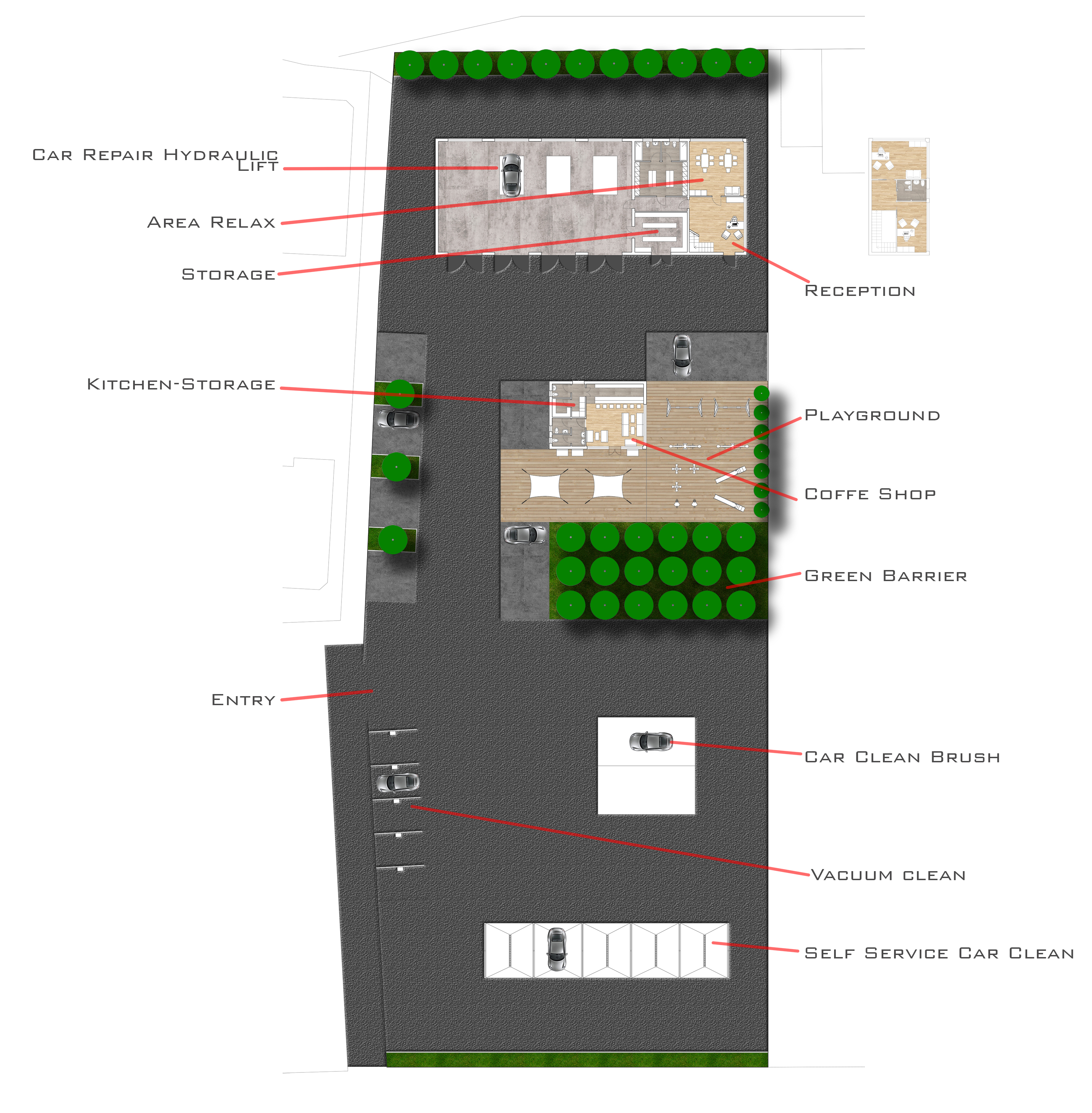 Area autolavaggio self-service con punto ristoro (coffeshop) e riparazione autovetture