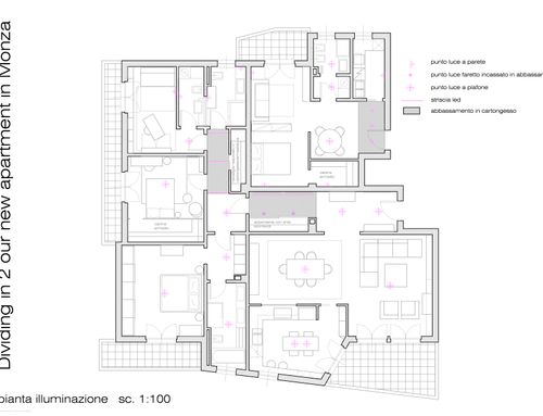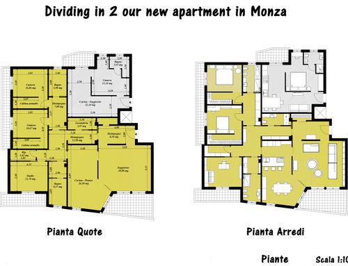 L’apprtamento attuale dovra’ essere ristrutturato e frazionato in 2: un appartamento principale di circa 170 mq, che sara’ abitato da noi. Questo appartamento dovra’ avere