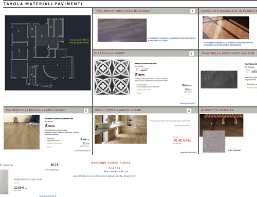 per i bagni: piastrelle/rivestimenti circa 30 euro/mq, sanitari 1200 euro/bagno