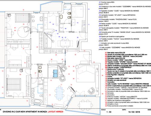 Una delle sfide e’ ottenere la miglior divisione dei 2 appartamenti riducendo al minimo lo spostamento dei muri esistenti, mantenendo il marmo del salone e il parquet delle camere per l’appartamento principale. L’appartamento piu’ piccolo invece potrebbe essere ricostruito completamente.
