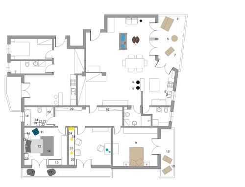 Definetively not a classic design: maybe retro modern for the main apartment. We both lived abroad for a while, making travelling an interesting subject, not so much for ethnic inspiration, and enjoy practicing sports. Keep in mind that my wife is always complaing that she is ruinning out of space for our cloths!