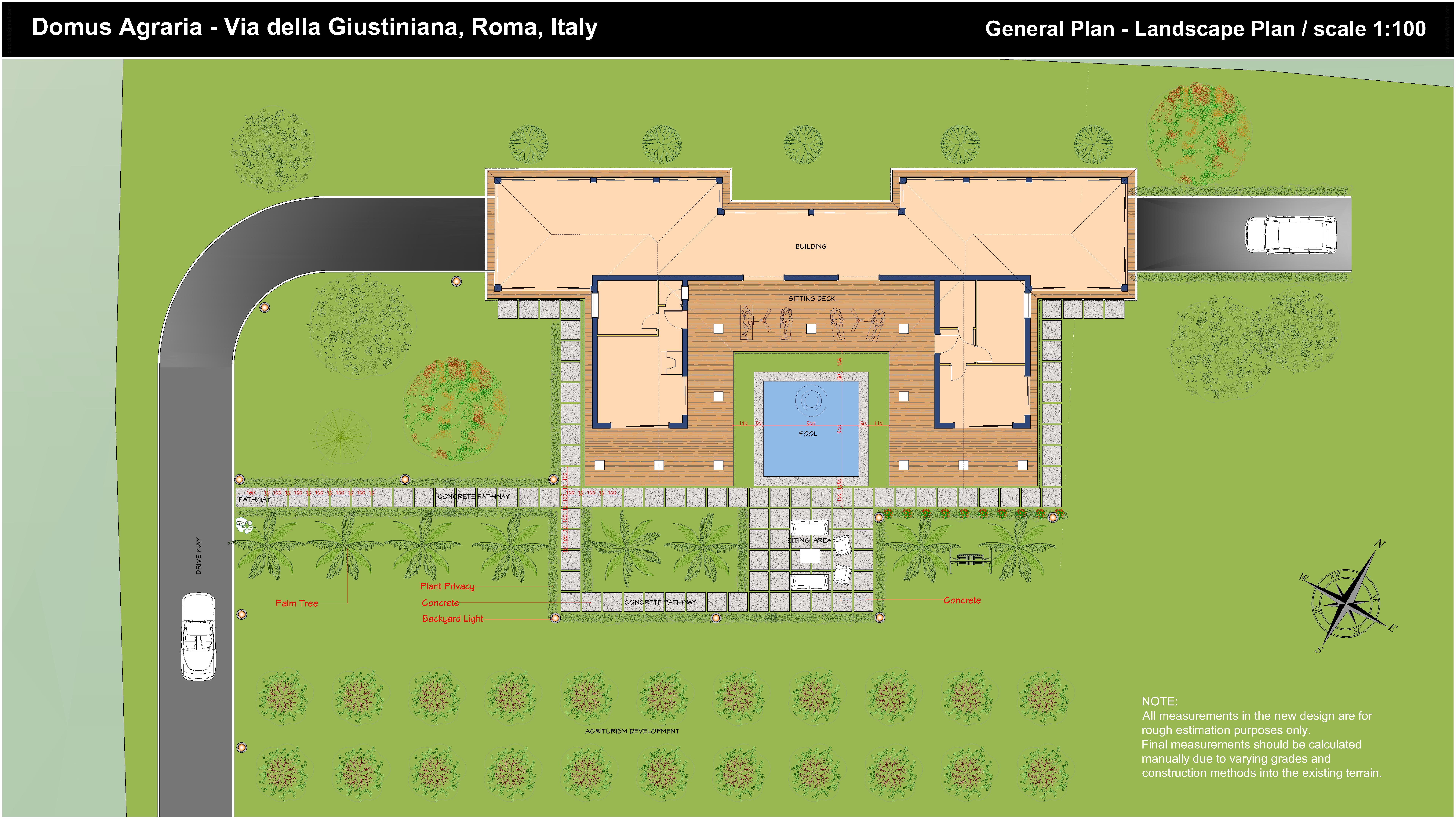 - MAINTAINING URBAN VOLUMES, REVISIT IN A MODERN ACCENT, BUT CONTINUING 'TRADITION WITH ROMAN FARM, THE BUILDING, THE SOLUTION OF TRI-PORTICO WITH CENTRAL ORNAMENTAL POOL  "IMPLUVIUM" RECALL THE ROMAN CULTURE, THE ARCHITECTONIC  STYLE CAN 'BE OF DESIGN.