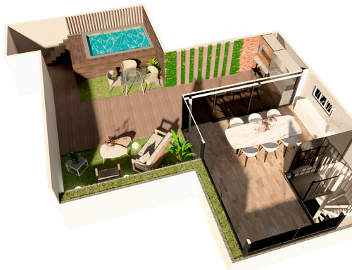 Hola a todos. Mi pareja y yo compramos un ático en papel que aĂşn no se ha construido. El apartamento está en el Ăşltimo piso y consta de 2 unidades; en el primer piso hay una casa de 82 metros cuadrados con invernadero solar y balcĂłn. El piso superior tiene 90 m2 de terraza. Por el momento todavĂa somos dos. Ambos trabajamos mucho desde casa, por lo que debemos estar perfectamente conectados. Necesitamos una cocina bien equipada con muchos puntos de apoyo con la posibilidad de poder movernos fácilmente. Me gustarĂa tener un cierre con vidrios estilo Lissoni. Cocina de inducciĂłn y todas las tecnologĂas modernas de cocina. Color blanco o en cualquier caso tonos claros. Consideren preferiblemente muchos cajones y estantes. Tenemos mucha ropa, vestidos y zapatos. Nos gustarĂa una soluciĂłn en la entrada de la casa para poder quitarnos los zapatos y los abrigos. Usamos la cinta de correr y hacemos actividades corporales libres. Estamos acostumbrados a ver televisiĂłn despuĂ©s de cenar en el sofá. Los amigos y familiares no nos visitan a menudo, preferimos salir e ir a la playa siempre que sea posible. Siempre nos ha gustado una gran terraza que tambiĂ©n se pueda disfrutar en invierno, nos gustarĂa que fuera muy verde, imaginamos un perĂmetro de mamposterĂa con plantas y un piso de madera posiblemente, pero tambiĂ©n cualquier soluciĂłn agradable. Nos gustarĂa una bañera grande en la terraza y una ducha. Estamos abiertos a cualquier idea, no excluimos ideas diferentes. Adjunto una simulaciĂłn hecha por mĂ (asĂ que no preste atenciĂłn a las inexactitudes). Muchas gracias, buen trabajo.