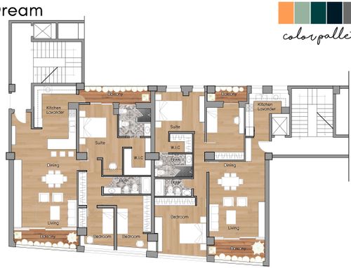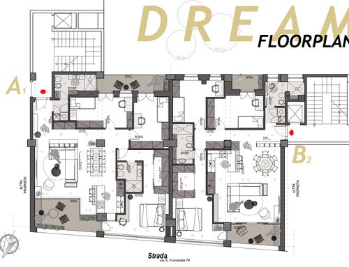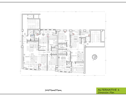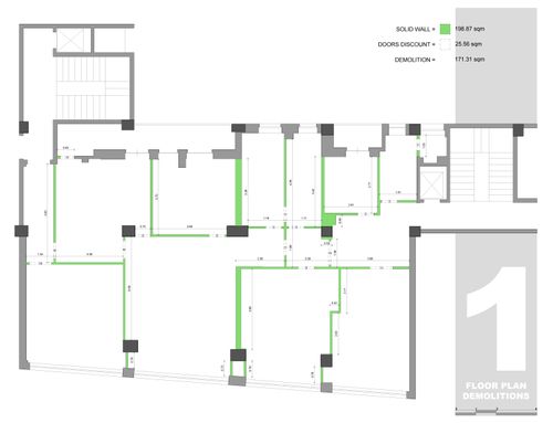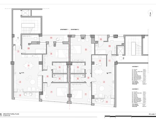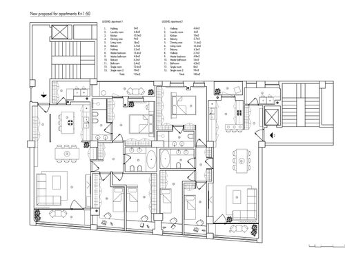 It is a large space to be divided into two apartments which should have at least the following rooms: