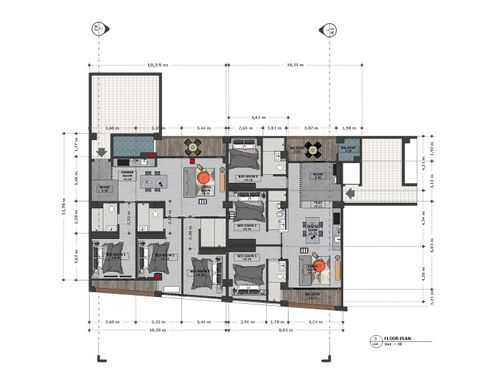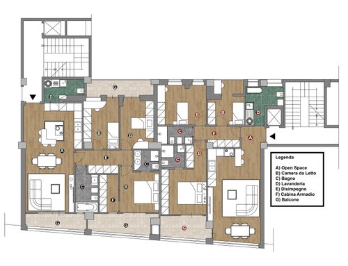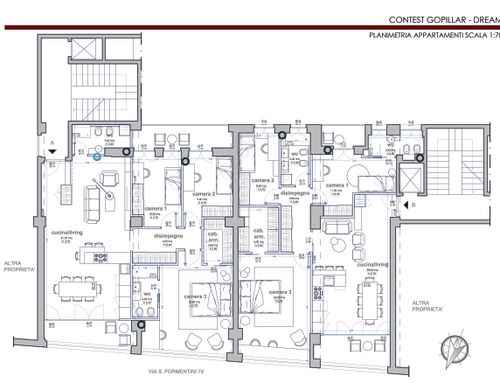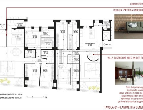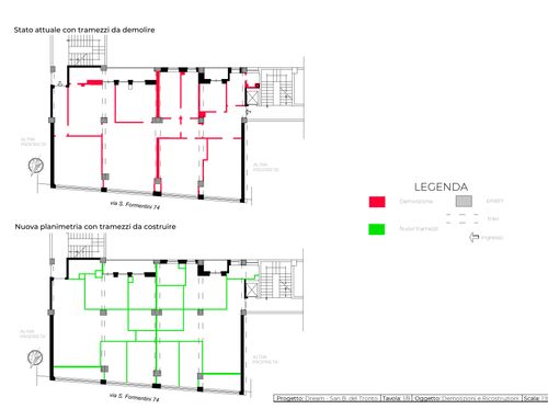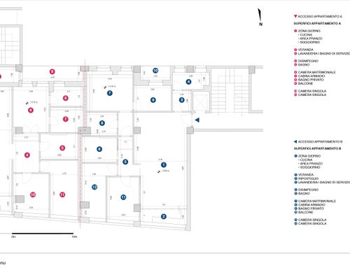 Si tratta di un grande spazio da dividere in due appartamenti che dovrebbero avere i seguenti vani minimi: