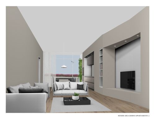 Le viste RENDER minime richieste sono su zona giorno, bagno, soluzione balcone nord.
