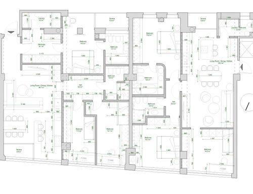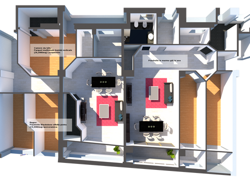due/3 (da preferire 3) camere dal letto; cabina armadio; due bagni; lavanderia; cucina; salone con pranzo.