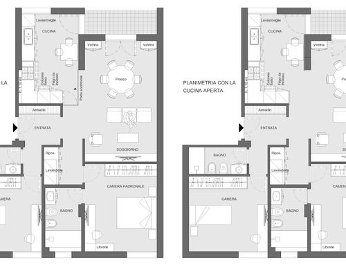 In alternativa, vorrei mantenere cucina e soggiorno separati. L importante è trovare nel soggiorno lo spazio per i libri e l angolino per correggere i compiti e fare la videoconferenza con gli alunni.