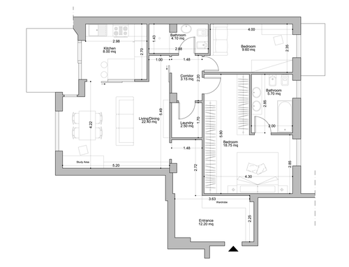 • Laundry (with optional sink), washing machine and tumble dryer that can be made in one of the bathrooms.