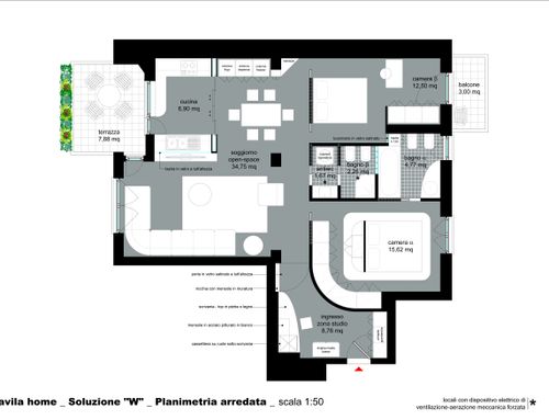 • Lavanderia (con lavatoio optional), lavabiancheria ed asciugatrice eventualmente da ricavare in uno dei bagni.