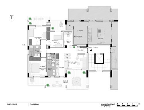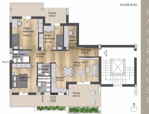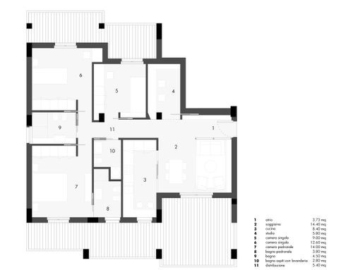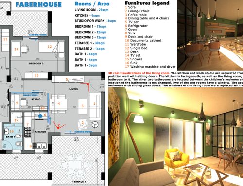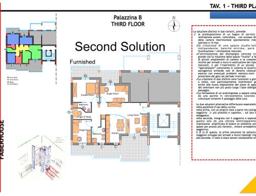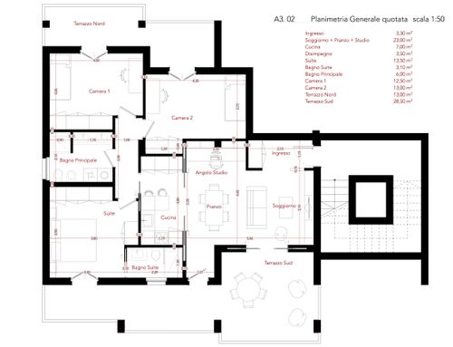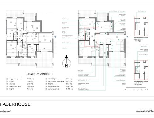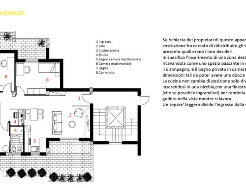 I would like to have a tiny studio and possibly a tiny bathroom for the guests (with only a small sink and a toilet) which can alternatively also be used as a small laundry room (I could place the washer machine and the dryer machine in a vertical position to save space). If the result turns out unpredictable, I could put both the machines on the terraces, which will be completely covered.