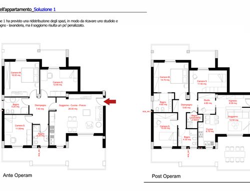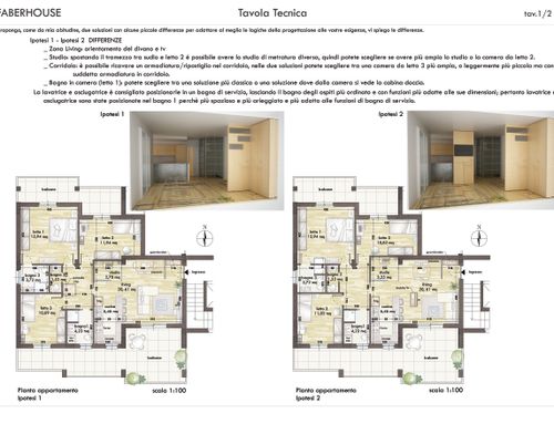 Valutate per favore la soluzione porte scorrevoli per recuperare spazio. I bagni solo con le docce quindi delle dimensioni giuste.