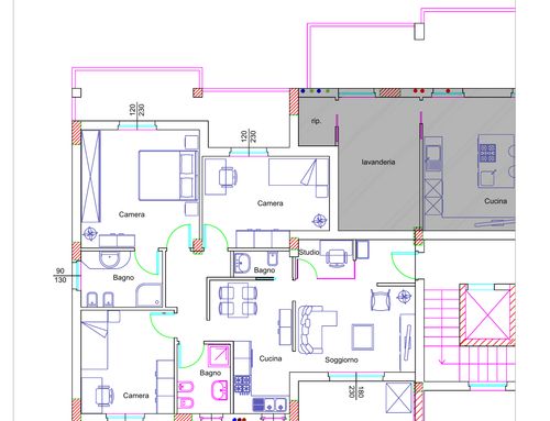 Se possibile vorrei ricavare un piccolissimo studiolo per me ed eventualmente un piccollissimo bagno per gli ospiti (con il solo il lavadino e wc) o in alternativa renderlo operativo come locale lavanderia dove potrei mettere la lavatrice e l'asciugatrice anche in verticale una sopra l'altra per evitare di metterle sul terrazo. Resta il fatto che se ciò non fosse possibile collocherei la lavatrice e l'asciugatrice sul terrazzo che comunque sarà interamente coperto.