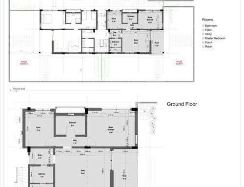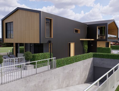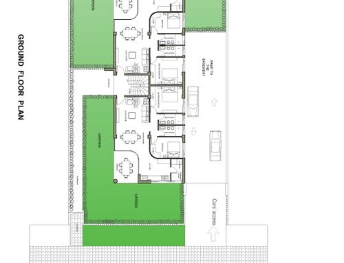The house will be built on a rectangular plot with only one driveway access and the pedestrian access will be from the sidewalk.