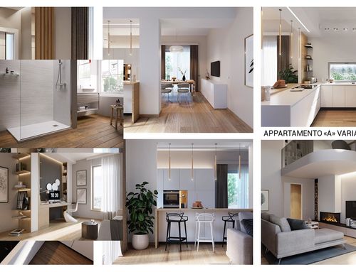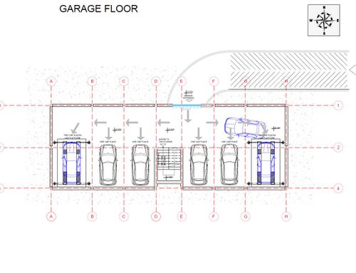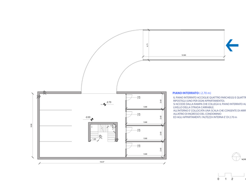 - una scala comune che porta ai piani superiori (i due piani terra potrebbero avere anche una scala privata direttamente dall'autorimessa)