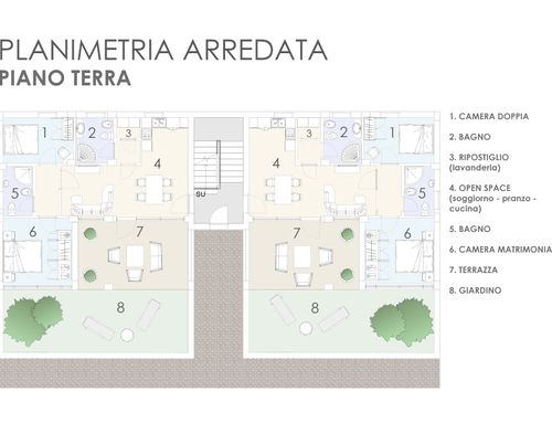 Fondamentalmente avremo due unità speculari al piano terra e altre due speculari al piano primo (al netto di piccole differenze ovviamente)