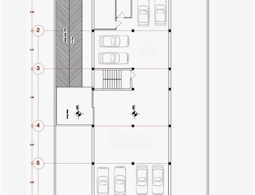 La casa de cuatro familias se construirá en un lote rectangular con un solo acceso de entrada y las entradas peatonales serán desde la acera.