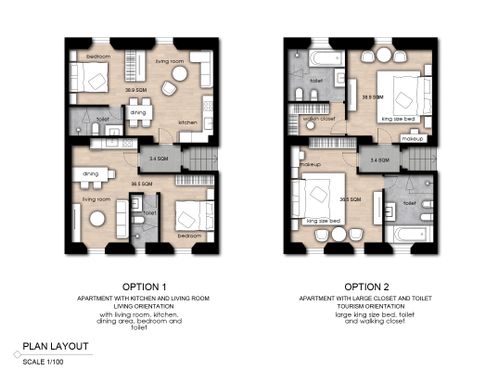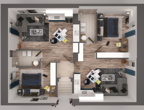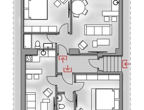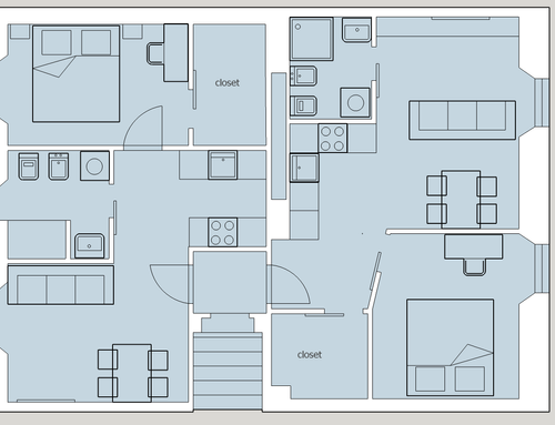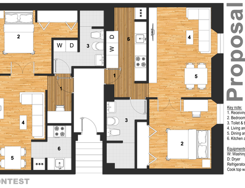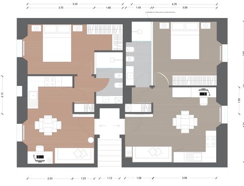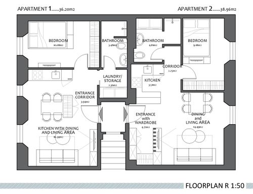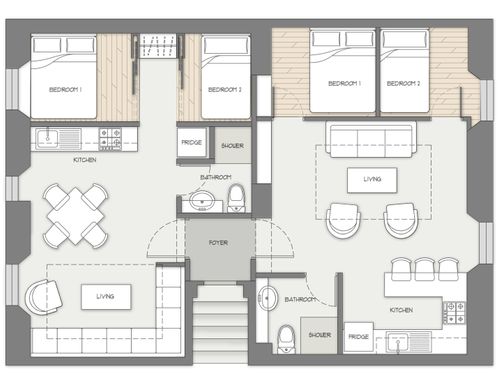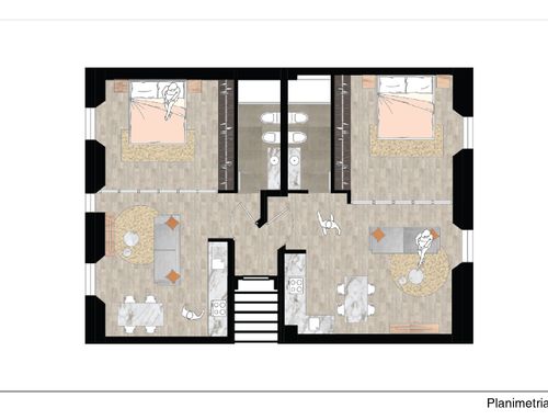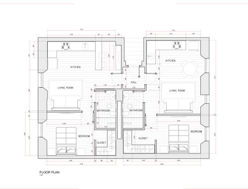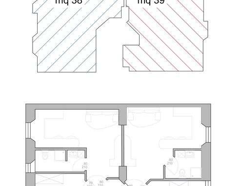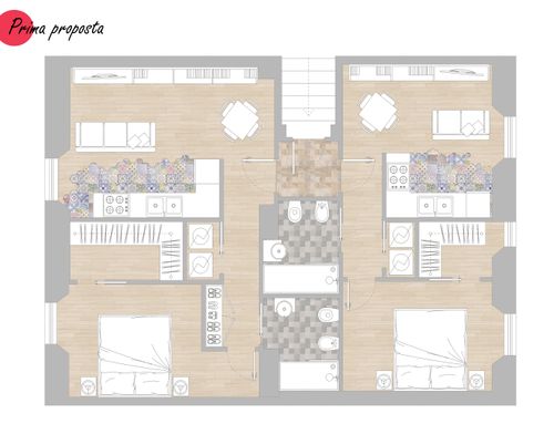 We need to split this apartment in 2 two-room apartments. The apartments should be appealing and made with fresh, modern design.