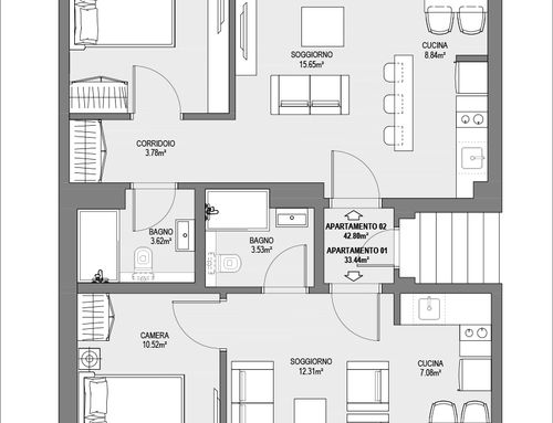 Si richiede ipotesi di frazionamento in due unita immobiliari BIFOCALI - giovani - di design - accattivanti