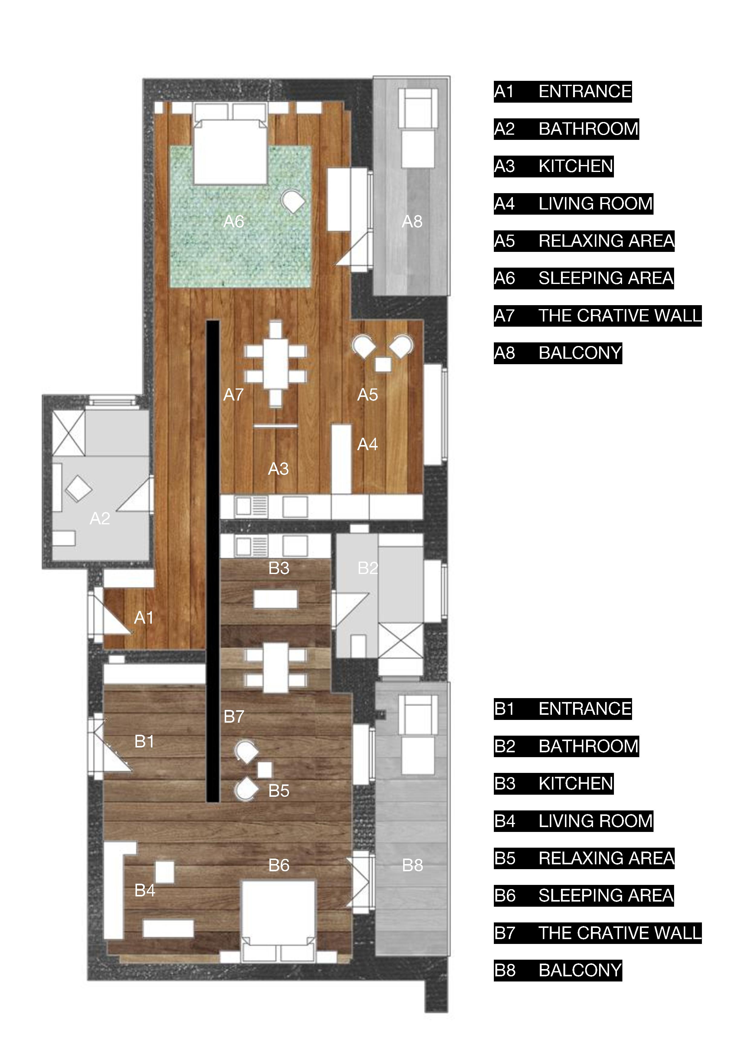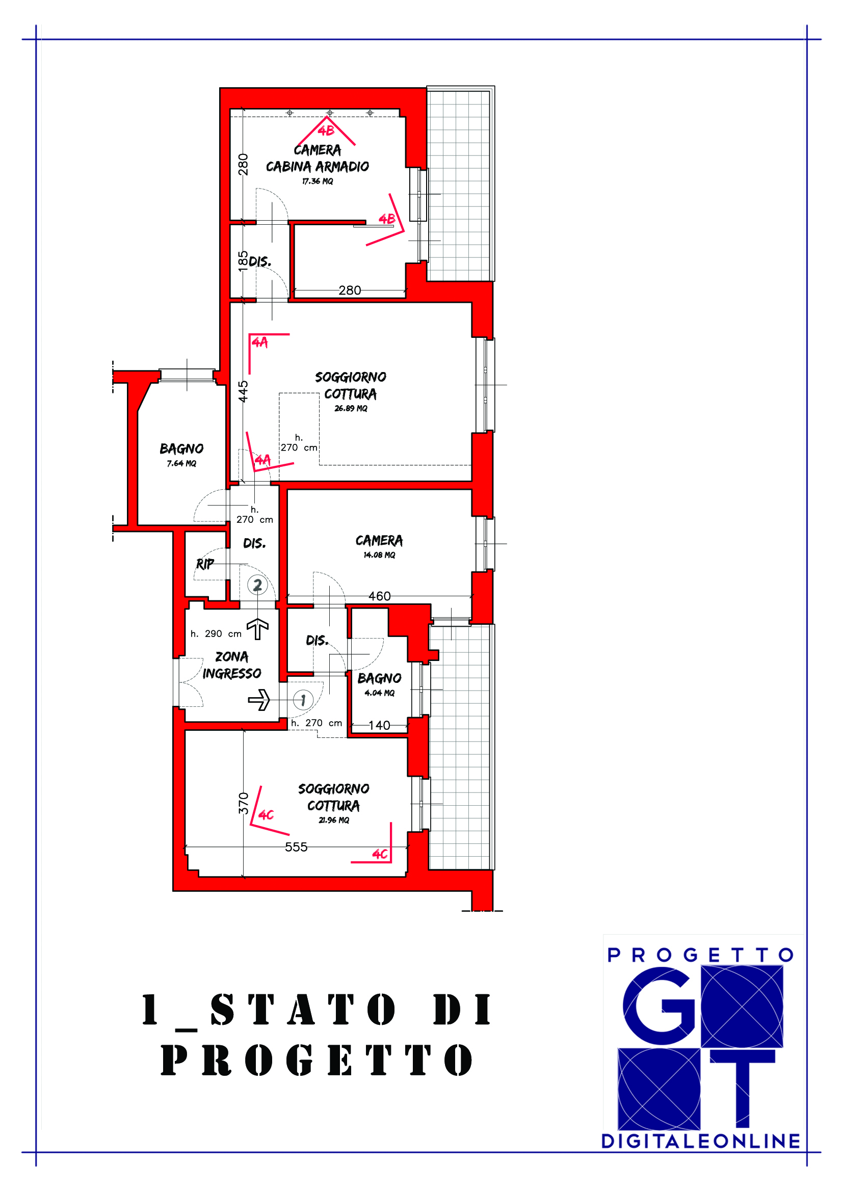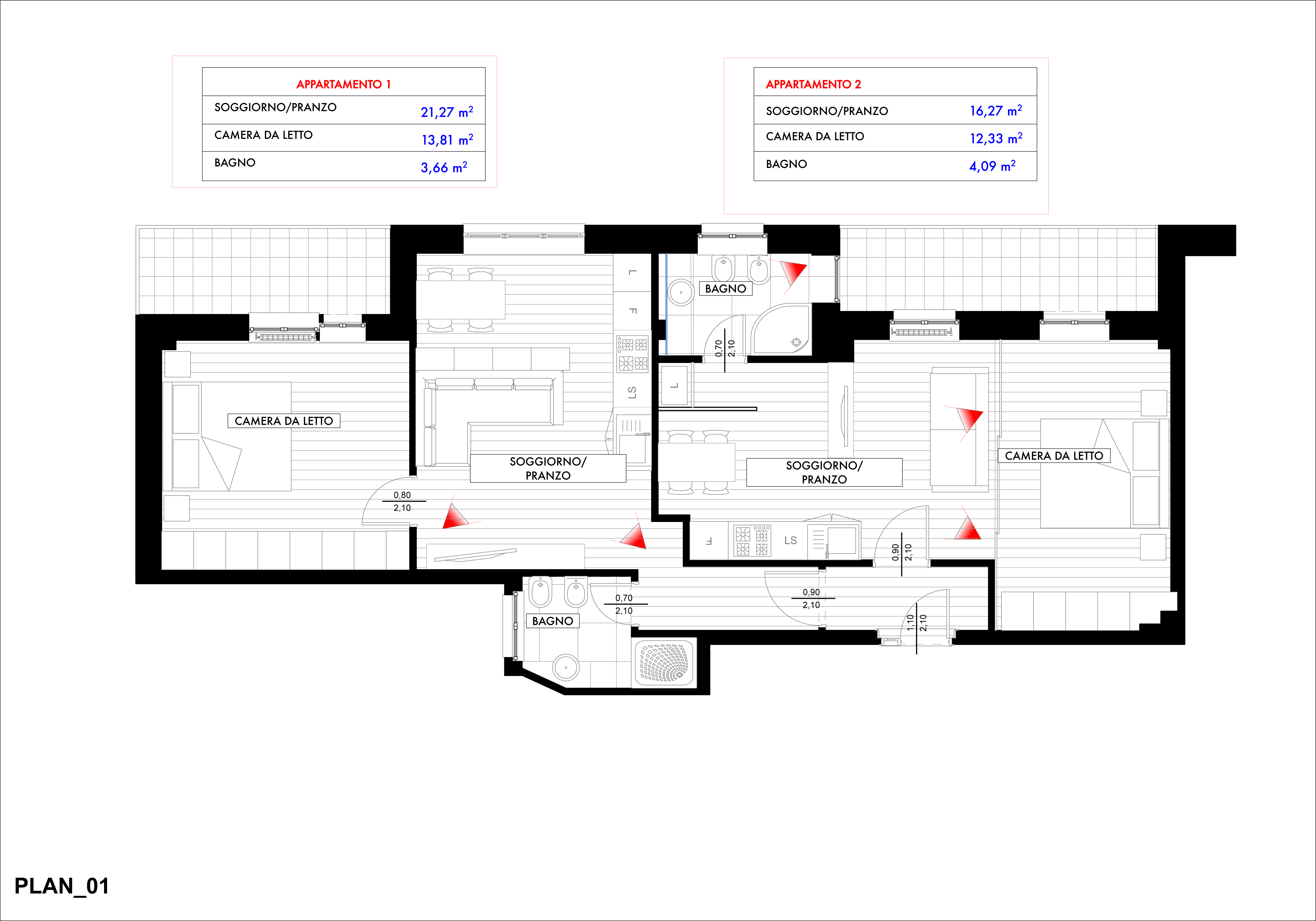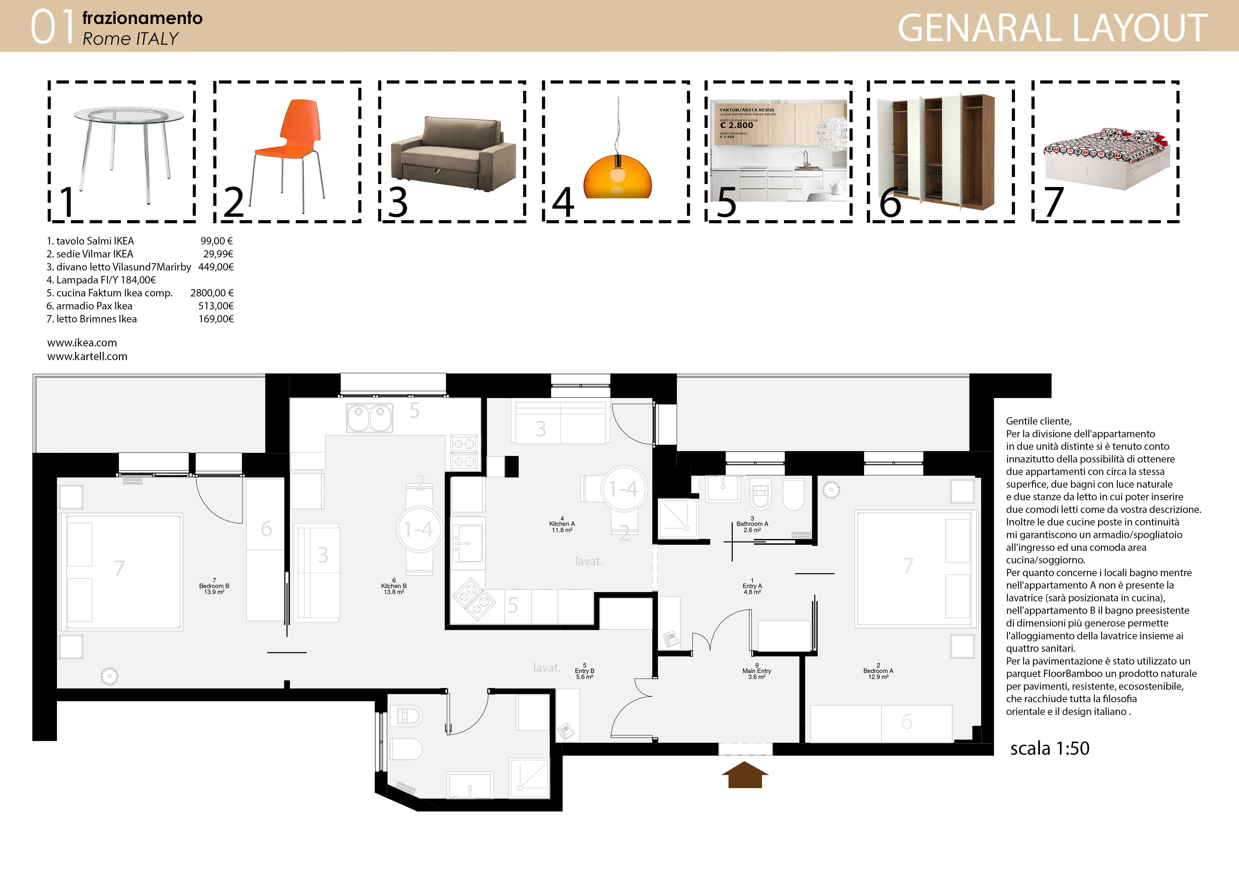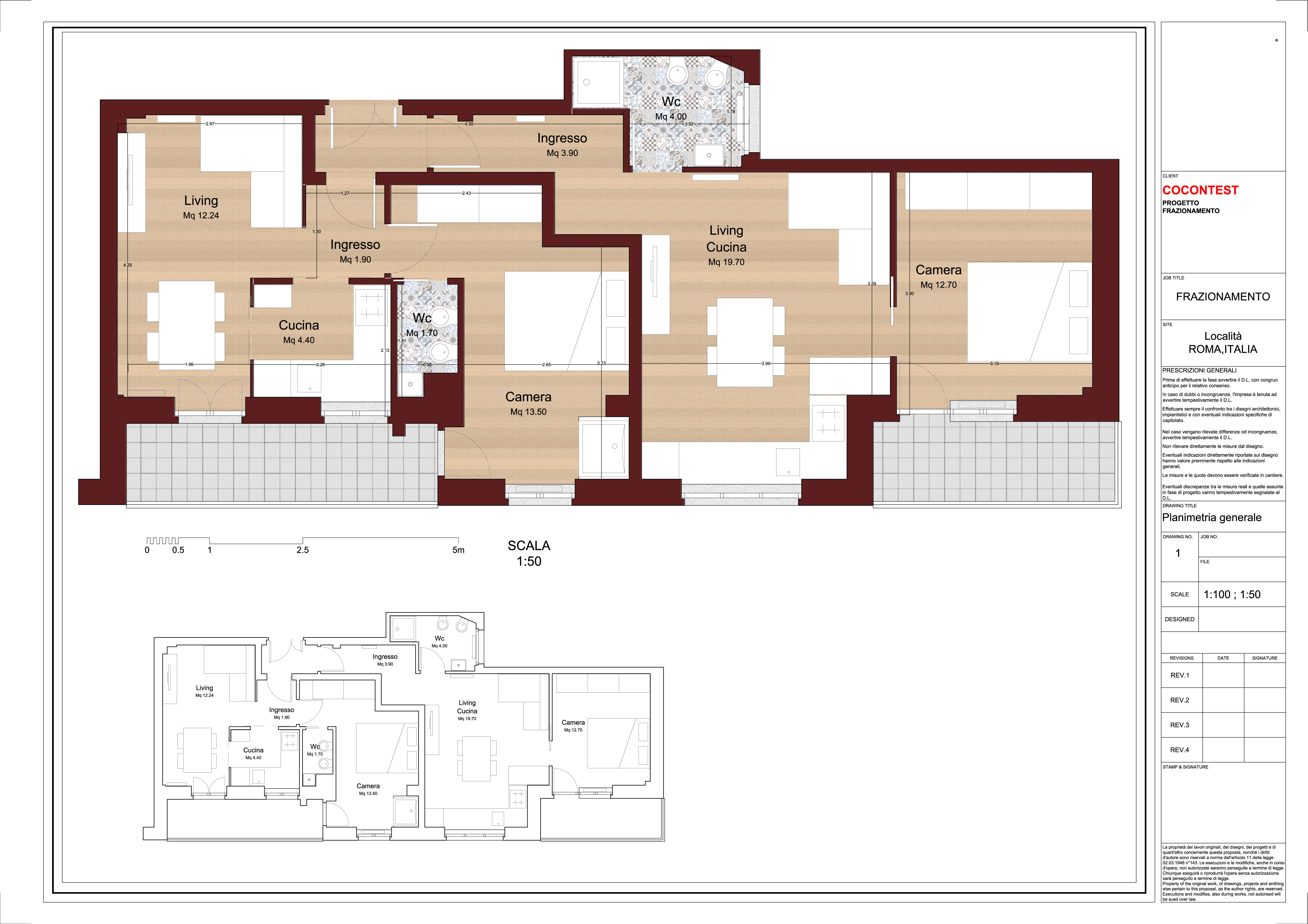 Questo appartamento deve essere frazionato in 2 bilocali ognuno dei quali sarà composto di soggiorno con angolo cottura, camera matrimoniale e bagno