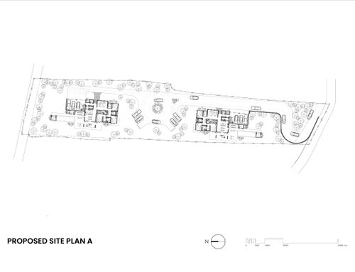 1. Dividir el terreno en dos viviendas unifamiliares de estilo moderno, “Villa A” y “Villa B”, de aproximadamente 183 m² cada una, en una sola planta, sin sótano.