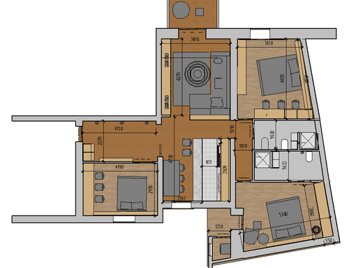 Allego una prima bozza di layout pensata da me ma che non mi convince appieno, manca la ghost kitchen, il locale tecnico e c’è molto spazio sprecato fra ingresso e zona giorno. Sono certo che saprete fare di meglio.